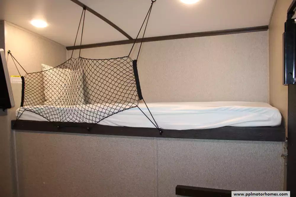 Specs: Length: 37.5 ft., Height: 11.4 ft., Interior Height: 6.6 ft., Payload Capacity: 2,280 lbs., Total Fresh Water Tank Capacity: 54 gal., Total Gray Water Tank Capacity: 76 gal., Total Black Water Tank Capacity: 38 gal., Number of Propane Tanks: 2, Total Propane Tank Capacity: 60 lbs.