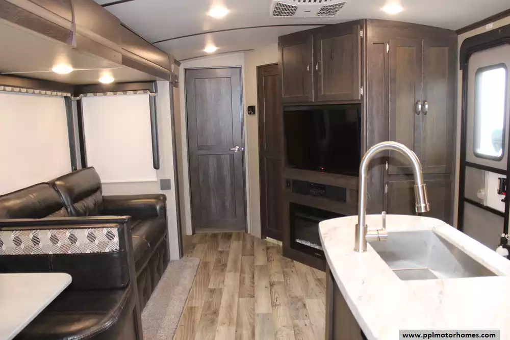 Step inside to a climate-controlled environment powered by a dual-unit system, including one ducted and one non-ducted air conditioner. The gourmet-inspired kitchen is anchored by a massive double-door residential GE refrigerator, a three-burner range, an oven, and a microwave. Evenings are best spent by the cozy fireplace or enjoying the premium entertainment setup, which includes three TVs and a DVD player. The experience extends to the outdoors with an automatic main awning and a fully equipped outdoor kitchen and entertainment system, allowing you to host the ultimate tailgate or campsite dinner. From the convenience of the electric tongue jack to the sophisticated interior finishes, this Outback 335CG is ready to deliver a professional-grade camping experience for the modern explorer.
