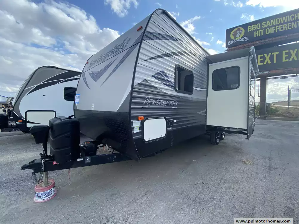 This 2018 Springdale by Keystone 235RB has an Electric Tongue Jack, 1 Slide-out, 1 Ducted Air Conditioner, Brand New Double Door 12v Furrion Refrigerator, Automatic Main Awning And Slide Awning with all new fabric, Outside Speakers, 3 TVs, Outside Shower, Microwave, 3 Burner Range, Oven , New Sofa with king size pull out sofa sleeper and all new tires.