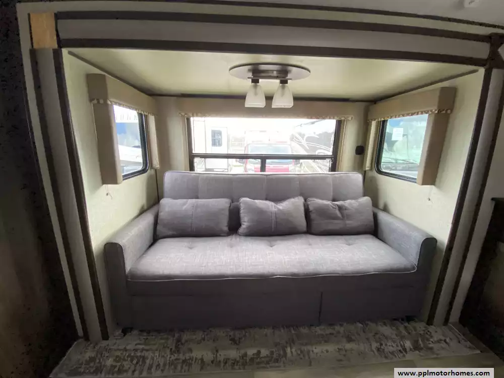 Experience the perfect balance of comfort and convenience with this 2018 Springdale by Keystone 235RB. Known for its thoughtful design and vaulted ceilings, this 27-foot travel trailer offers a spacious living environment that feels much larger than its footprint. The single deep slide-out significantly opens up the main cabin, providing plenty of room to move around the well-appointed kitchen and dining area. Whether you are preparing a meal using the large refrigerator or relaxing after a day of adventure, the Springdale reputation for durability and smart floor planning ensures a premium camping experience for couples and small families alike.