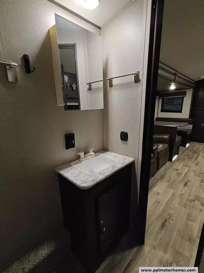 (Floor plan is NOT drawn to scale. Length of vehicle is approximate. Buyer is responsible for verifying actual length. PPL Motor Homes compiled this list of features, specifications, equipment and options as a guide. No representation or warranties, either express or implied, are made as to the accuracy of the information herein. Please verify for yourself all items listed before purchase.)