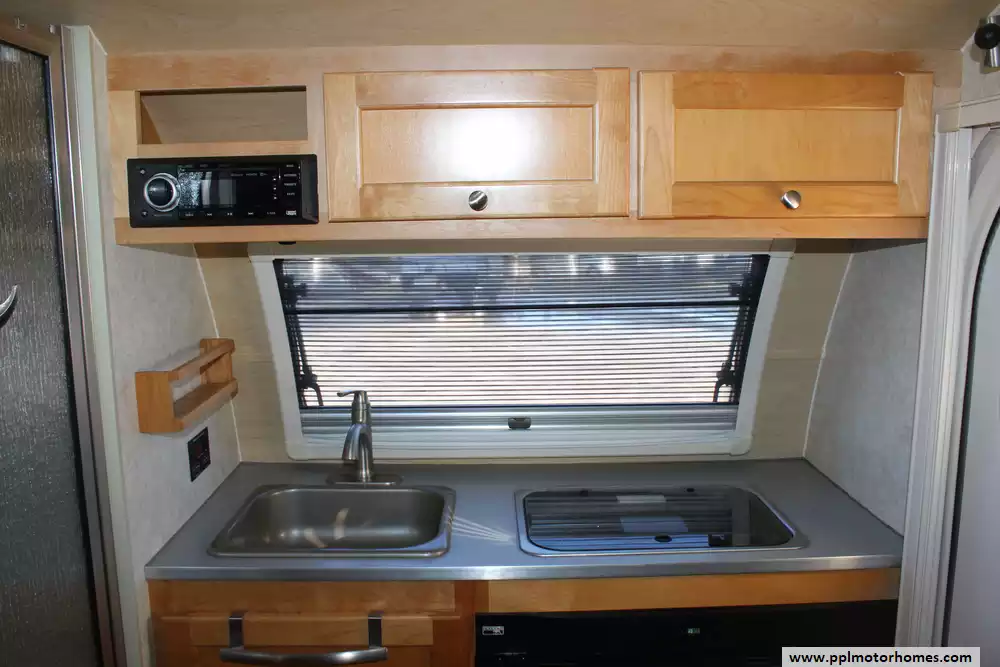 Specs: Length: 15.1 ft., Width: 6.5 ft., Height: 7.41 ft., Interior Height: 5.75 ft., Interior Width: 5.91 ft., Total Fresh Water Tank Capacity: 11 gal., Total Gray Water Tank Capacity: 19 gal., Total Black Water Tank Capacity: 8 gal.