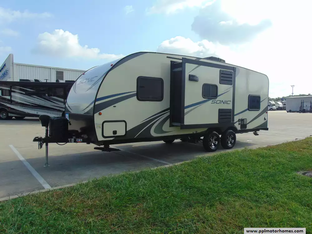 This 2018 Sonic 234VBH is a well-designed,lightweight travel trailer that combines functionality with modern conveniences,making it a great option for families or small groups.It is easy to tow with a variety of mid-sized SUVs or trucks,making it ideal for those who want the flexibility of travel without a heavy-duty tow vehicle.Features Include...Electric Tongue Jack, 1 Slide-out, 1 Non-Ducted Air Conditioner, Double Door Gas/110v Norcold Refrigerator, In-Fridge Ice Maker, Satellite Dish, Outside Speakers, TV, Outside Shower, Microwave,and 2 Burner Range. This is a compact,efficient,and family-friendly travel trailer that delivers both comfort and convenience for short trips or extended vacations.