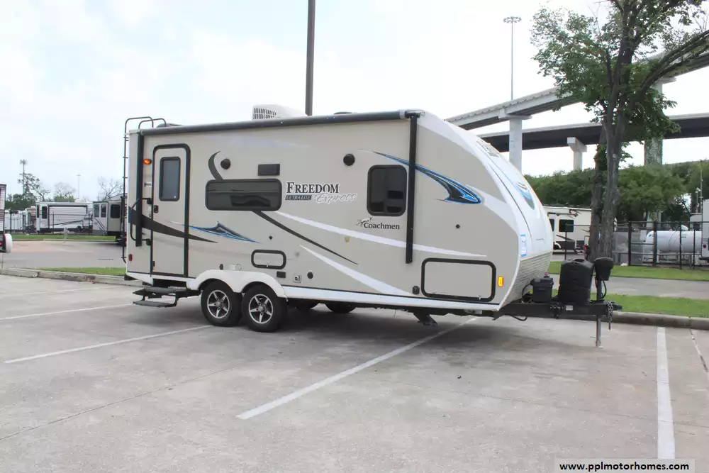 This 2019 Coachmen Freedom Express 192RBS is a compact yet well-equipped travel trailer designed for couples or small families looking for a lightweight and comfortable RV. Features Include...Electric Tongue Jack, 1 Slide-out, 1 Non-Ducted Air Conditioner, Double Door Gas/110v Dometic Refrigerator, Automatic Main Awning, Outside Speakers, TV, Outside Shower, Outside Grill, Microwave, 3 Burner Range, and Oven. Its murphy bed layout, spacious rear bath, and quality construction make it a popular option for weekend getaways and extended trips.