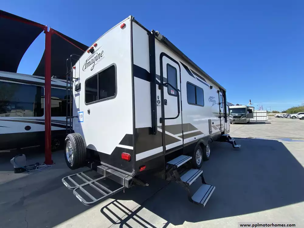 This 2019 Imagine 2250RK has an Electric Tongue Jack, 1 Slide-out, 1 Ducted Air Conditioner, Double Door 12v Dometic Refrigerator, Outside Speakers, TV, DVD Player, Outside Shower, Fireplace, Microwave, 3 Burner Range