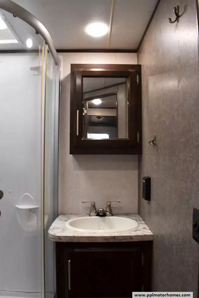 (Floor plan is NOT drawn to scale. Length of vehicle is approximate. Buyer is responsible for verifying actual length. PPL Motor Homes compiled this list of features, specifications, equipment and options as a guide. No representation or warranties, either express or implied, are made as to the accuracy of the information herein. Please verify for yourself all items listed before purchase.)