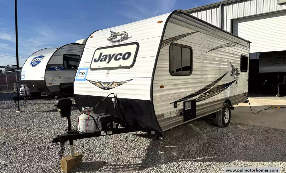 This 2019 Jayflight Slx Series 175RD has an Electric Tongue Jack, 1 Non-Ducted Air Conditioner, Single Door Gas/12v Dometic Refrigerator, Automatic Main Awning And Door Awning, TV, Microwave, 2 Burner Range