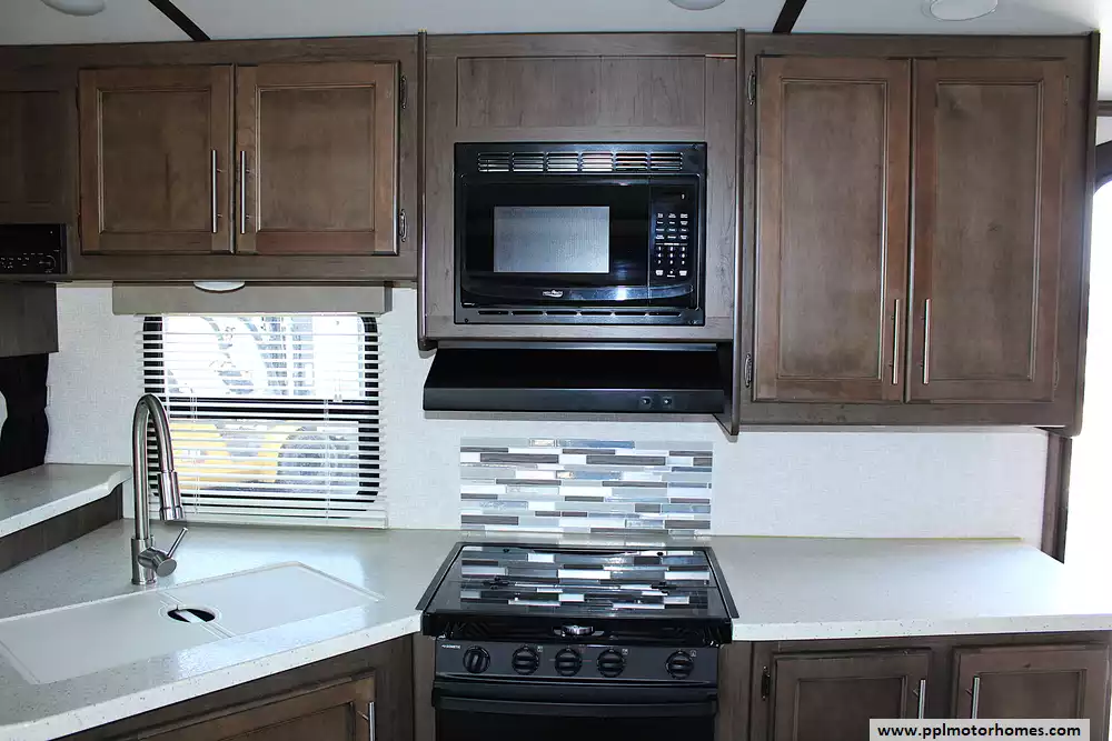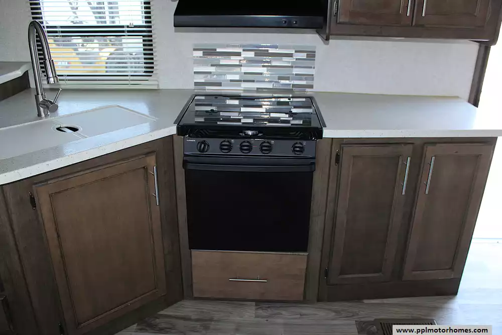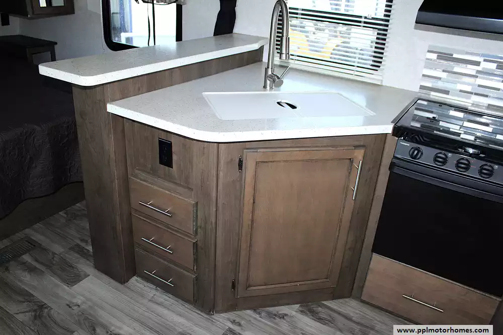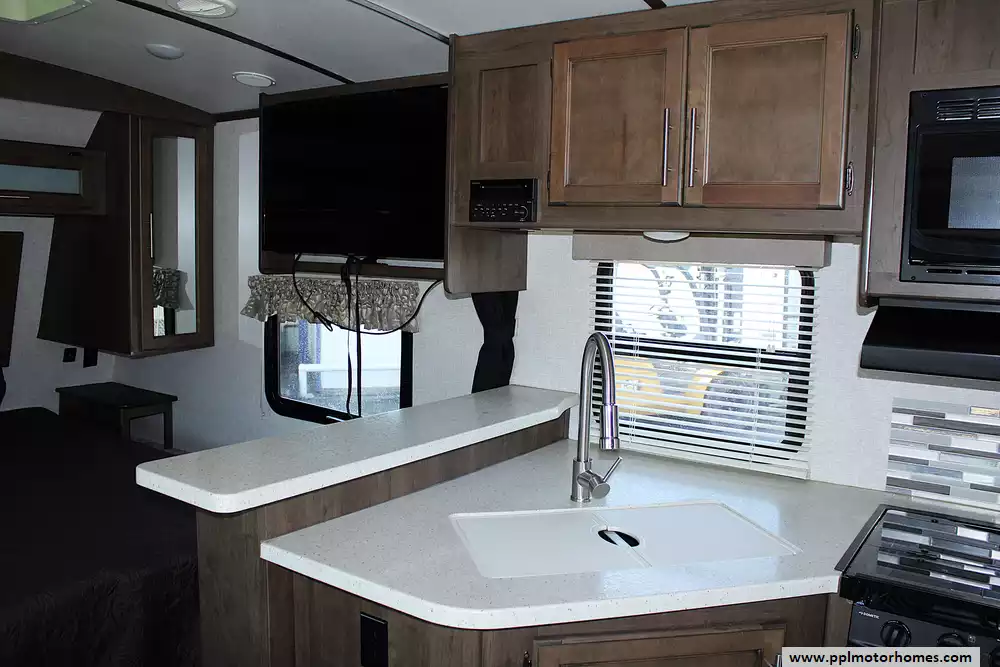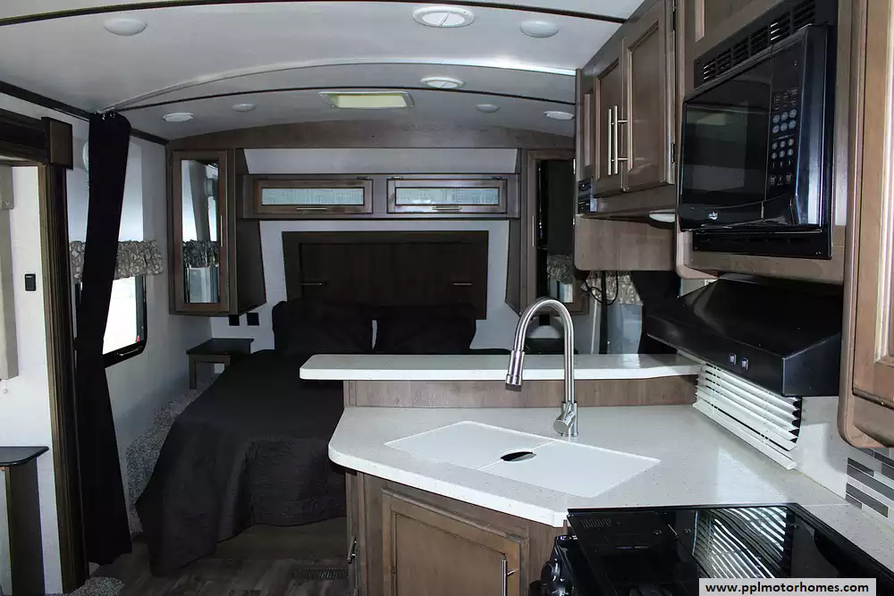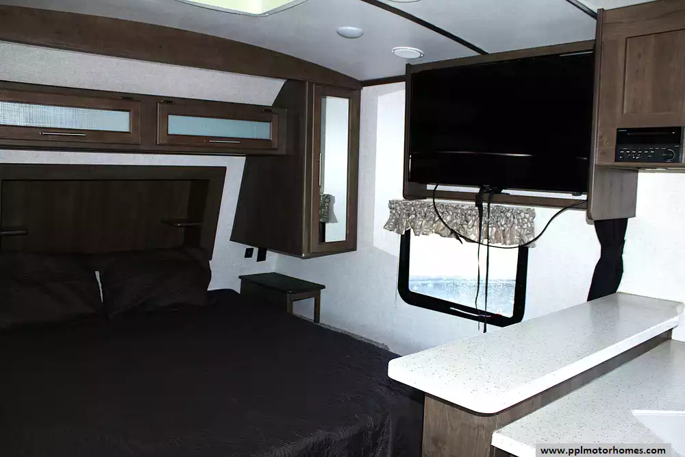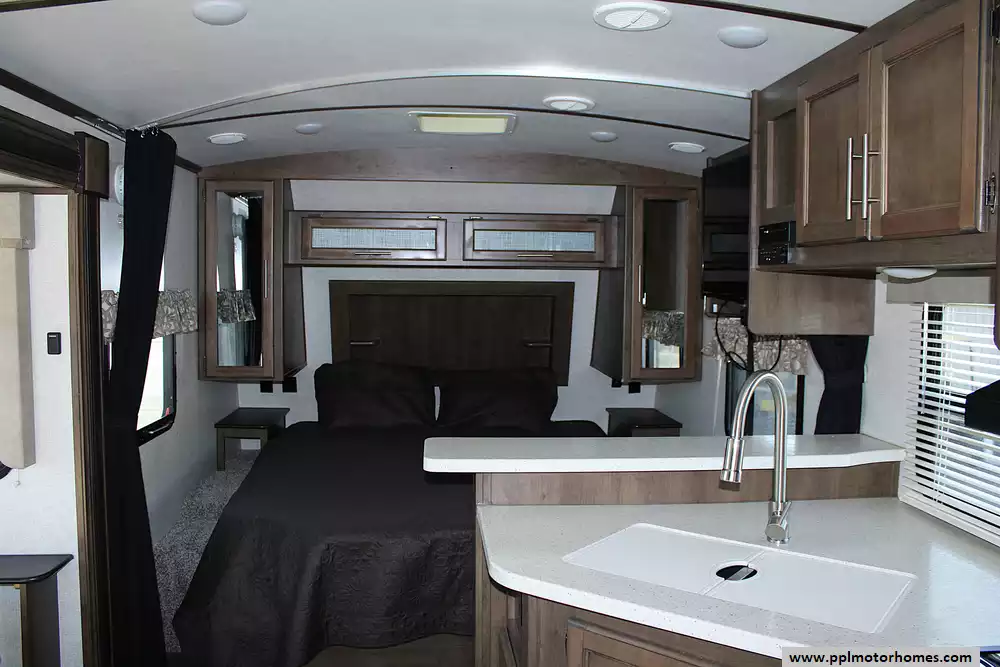 This Cougar 22RBS can sleep up to 4 people comfortably, with a dedicated queen-size bed in the front bedroom and the dinette converting to a sleeping space for additional guests. Whether you're camping with a partner or bringing along the kids, the layout maximizes usable space without feeling cramped. Large windows and thoughtful lighting make the interior bright and inviting.