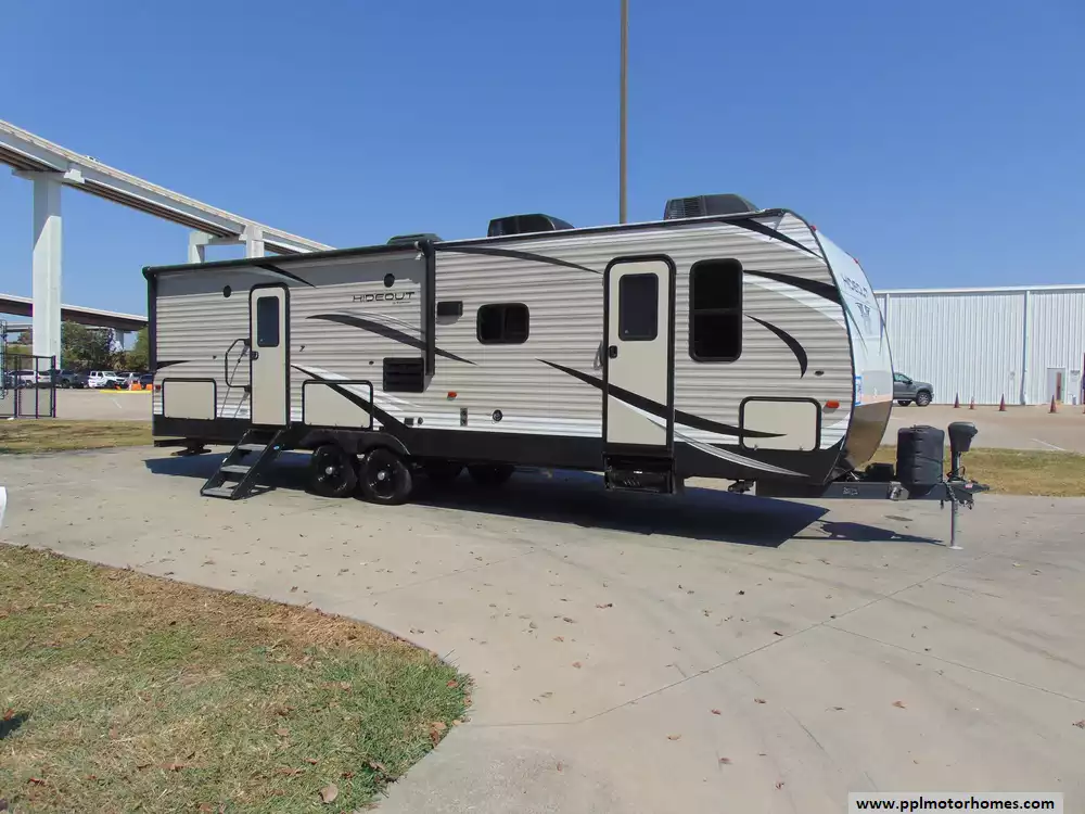 This 2019 Hideout Luxury 29DFS is a well-designed travel trailer,offering both comfort and practicality for family getaways or long-term stays.Features Include... Electric Tongue Jack, 1 Slide-out, 1 Non-Ducted And 1 Ducted Air Conditioner, Double Door Gas/110v Dometic Refrigerator, In-Fridge Ice Maker, Automatic Main Awning And Slide Awning, Satellite Dish, Outside Speakers,Cold Pkg, TV, Outdoor Grill, Outdoor Kitchen, Outside Shower, Fireplace, Microwave, 3 Burner Range,and Oven.It offers a great experience for those looking to enjoy the outdoors without sacrificing comfort.