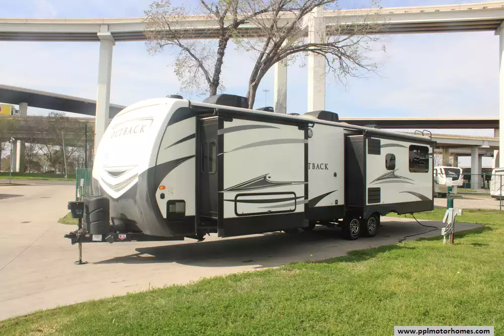 This 2019 Outback by Keystone 330RL is a stylish and well-equipped travel trailer designed to provide comfort, convenience, and luxury for adventurers seeking the ultimate RV experience. With its spacious layout, modern amenities, and durable construction, this model offers the perfect blend of functionality and style for families or couples looking to explore the great outdoors in comfort..Amenities Include...Electric Tongue Jack, 3 Slide-outs, 1 Non-Ducted And 1 Ducted Air Conditioner, Double Door Gas/110v Dometic Refrigerator, Automatic Main Awning And Slide Awning, Washer/Dryer, Outside Speakers, TV, Outdoor Kitchen,Back Up Camera and Monitor,Step Above Entry Steps,Arctic Barrier Pkg, Outside Shower, Microwave, 3 Burner Range,and Oven.This is a spacious and luxurious travel trailer that offers comfort, style, and convenience for travelers of all types. Whether you're embarking on a weekend getaway or a long-term road trip, this RV is ready to take you on your next adventure in style and comfort.