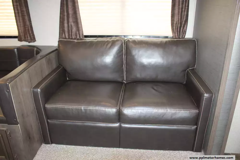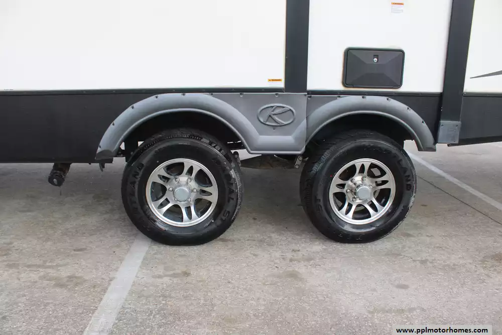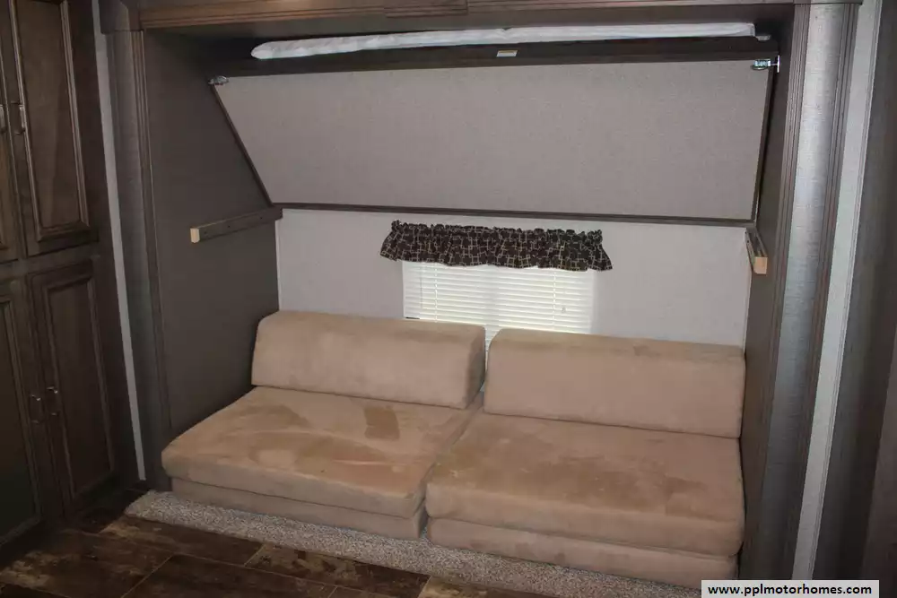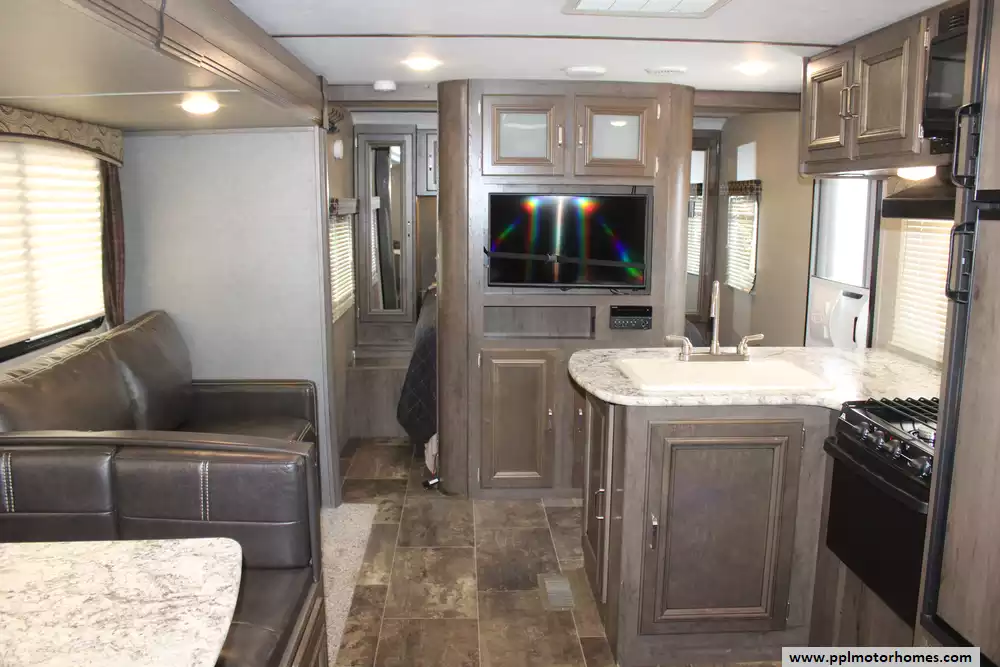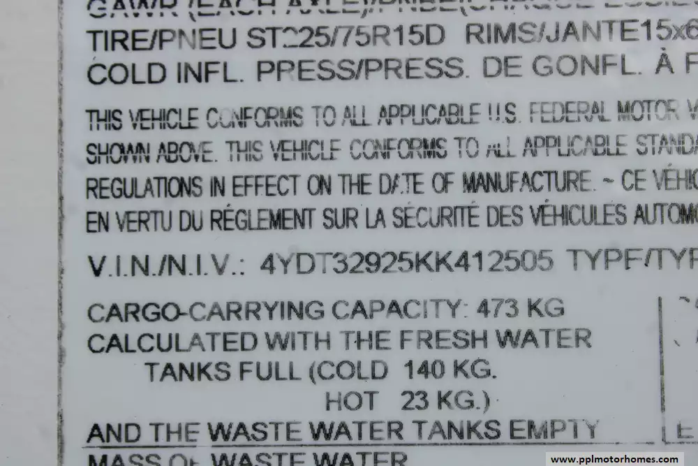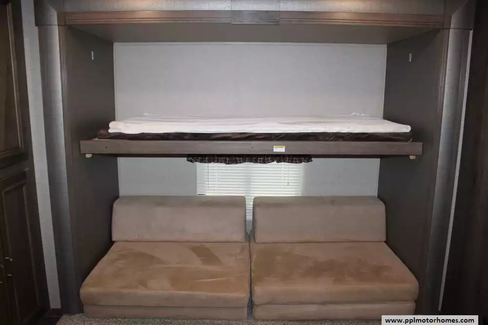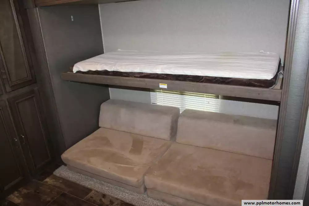 Specs: Length: 36.8 ft., Height: 10.8 ft., Payload Capacity: 1,323 lbs., Total Fresh Water Tank Capacity: 43 gal., Total Gray Water Tank Capacity: 38 gal., Total Black Water Tank Capacity: 38 gal., Total Propane Tanks: 2, Total Propane Tank Capacity: 40 lbs.