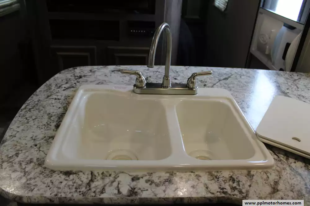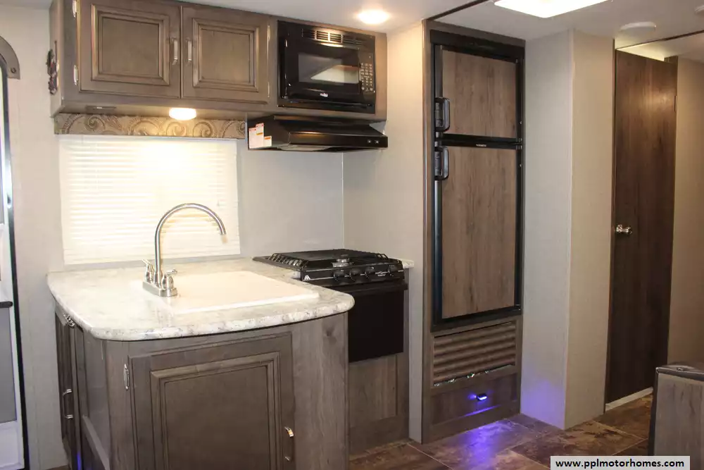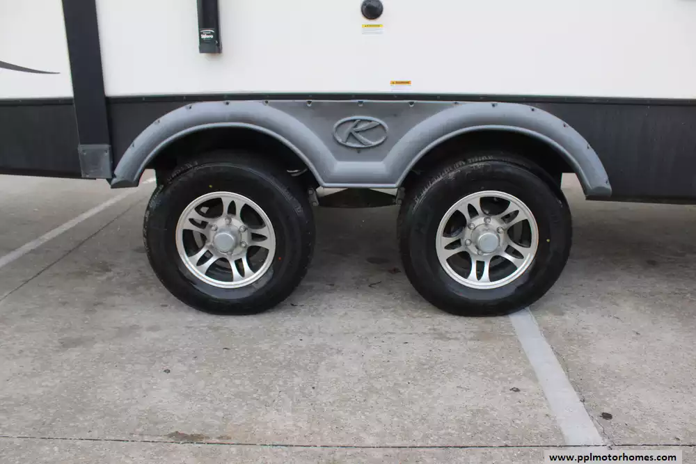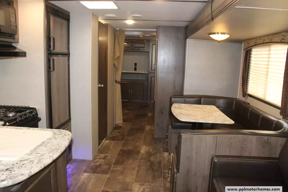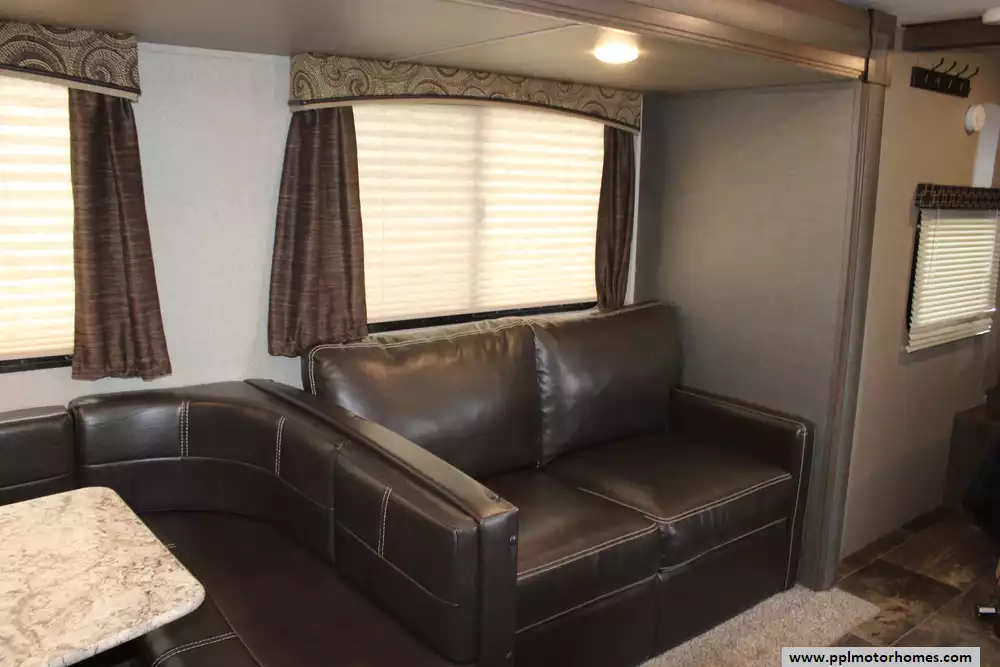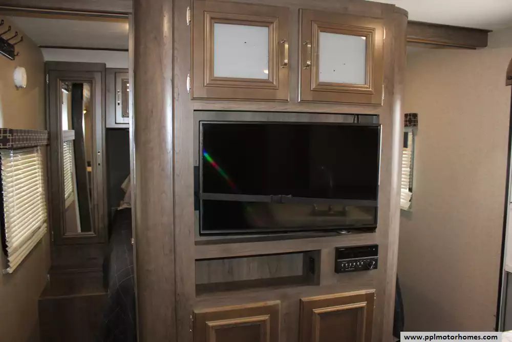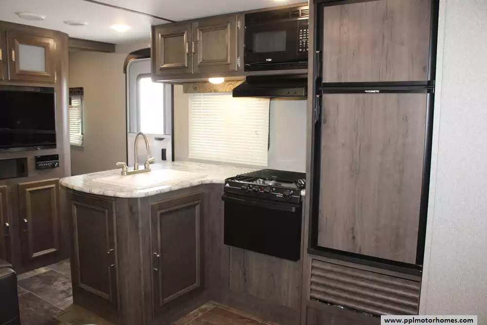 Specs: Length: 36.8 ft., Height: 10.8 ft., Payload Capacity: 1,323 lbs., Total Fresh Water Tank Capacity: 43 gal., Total Gray Water Tank Capacity: 38 gal., Total Black Water Tank Capacity: 38 gal., Total Propane Tanks: 2, Total Propane Tank Capacity: 40 lbs.