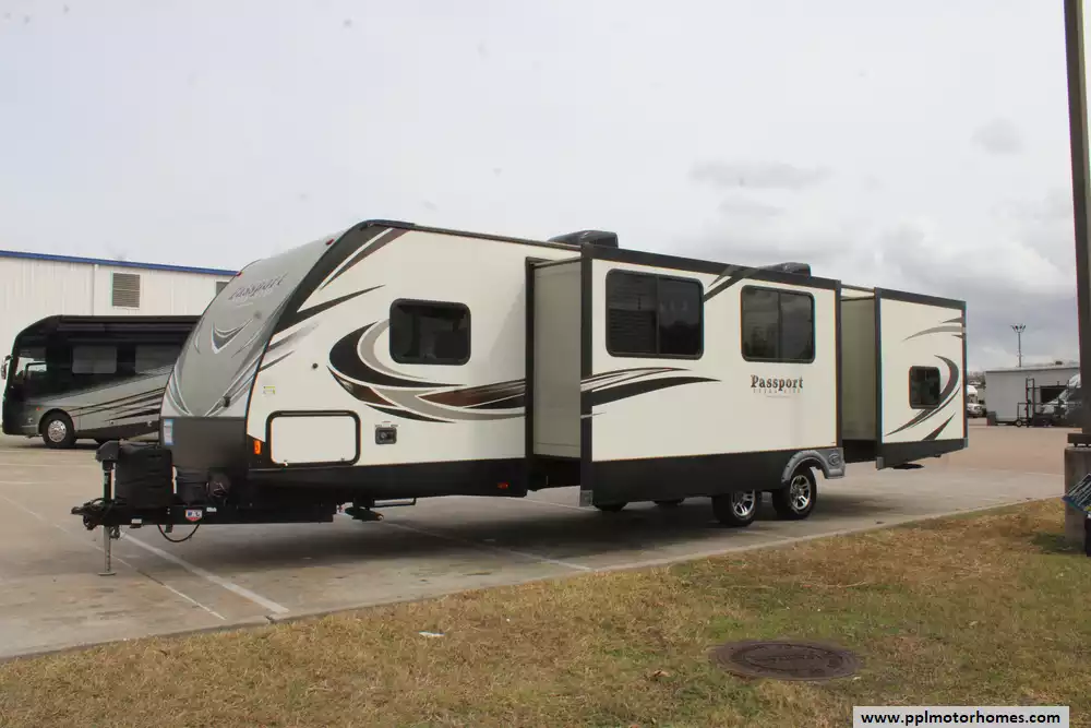 This 2019 Passport Grand Touring 3290BH is designed for families or groups who want plenty of sleeping space and a comfortable interior without sacrificing easy towing. Features Include...Electric Tongue Jack, 3 Slide-outs, 1 Non-Ducted And 1 Ducted Air Conditioner, Double Door Gas/110v Dometic Refrigerator, Automatic Main Awning, Outside Speakers, TV, Outdoor Grill, Outside Shower, Microwave, 3 Burner Range, and Oven.