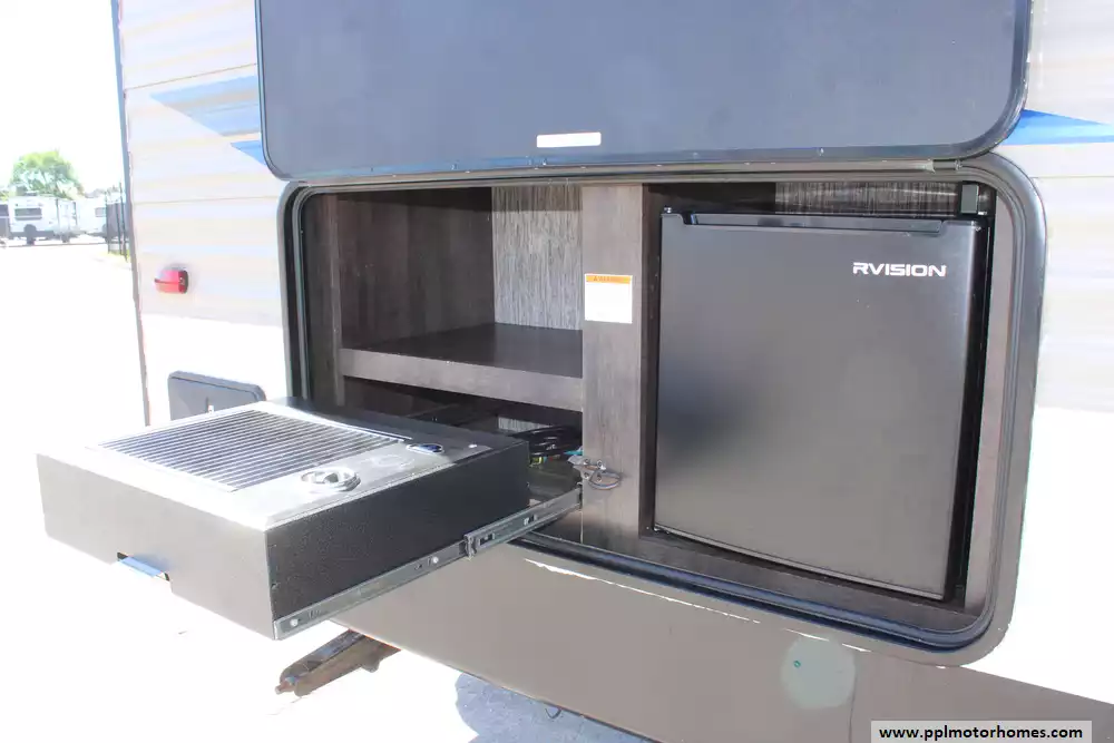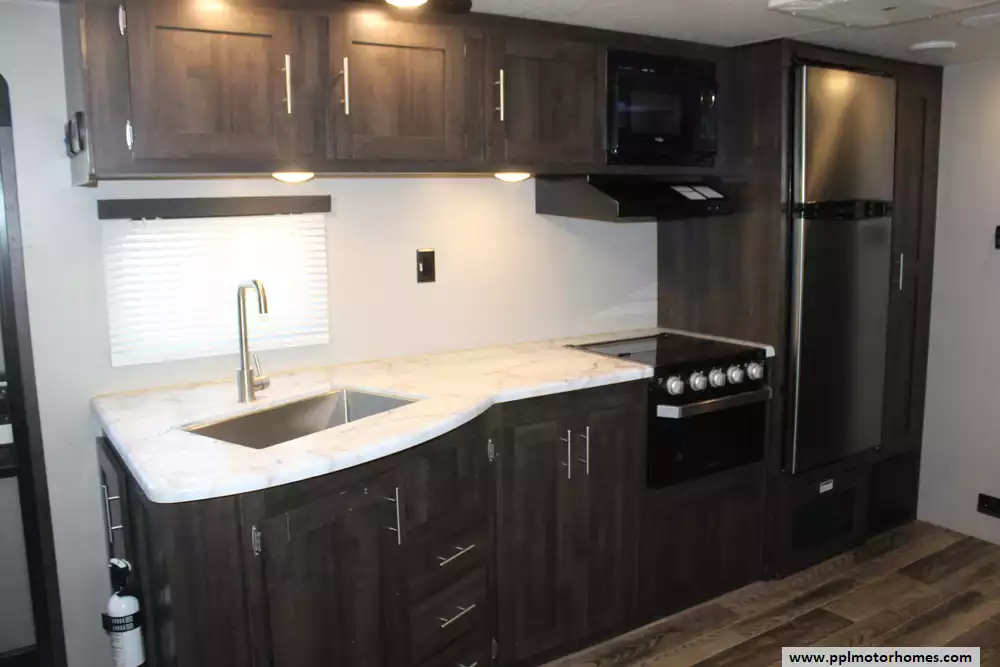 Adventure meets convenience with a suite of features designed to make every part of your trip effortless. The exterior is equipped with an electric tongue jack for quick setup and an automatic main awning that extends your living space into the great outdoors, complemented by a convenient outdoor kitchen for al fresco dining. To ensure total comfort in any climate, this unit features two ducted air conditioners, a highly sought-after upgrade for summer travel. Inside, the kitchen is fully prepared for any menu with a three-burner range, oven, microwave, and refrigerator. Combining KZ's trusted build quality with modern luxury, this Sportsmen LE is ready to power your next great escape.