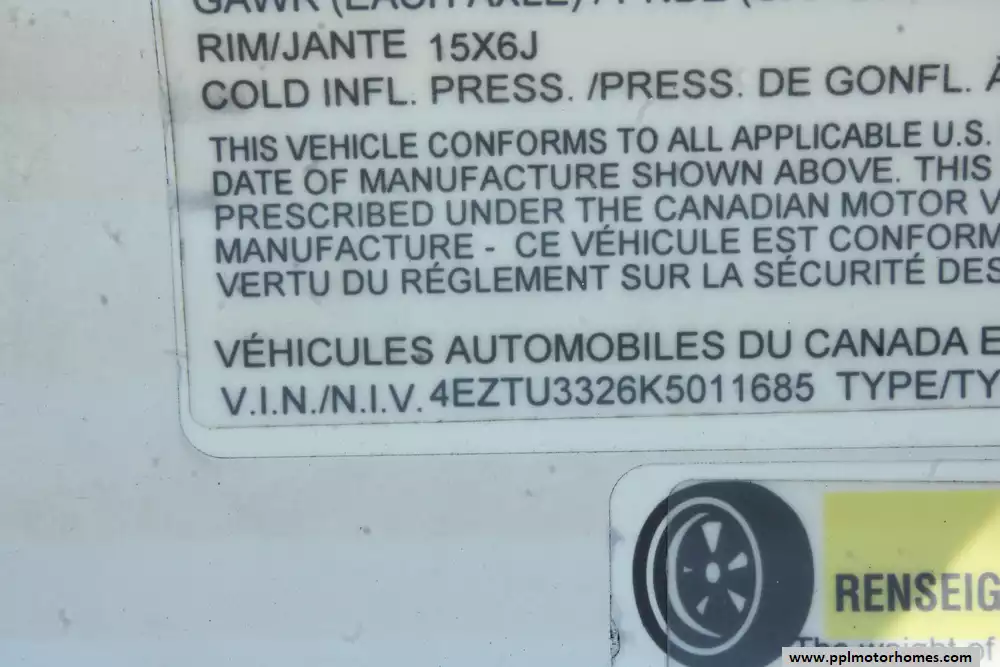 (Floor plan is NOT drawn to scale. Length of vehicle is approximate. Buyer is responsible for verifying actual length. PPL Motor Homes compiled this list of features, specifications, equipment and options as a guide. No representation or warranties, either express or implied, are made as to the accuracy of the information herein. Please verify for yourself all items listed before purchase.)