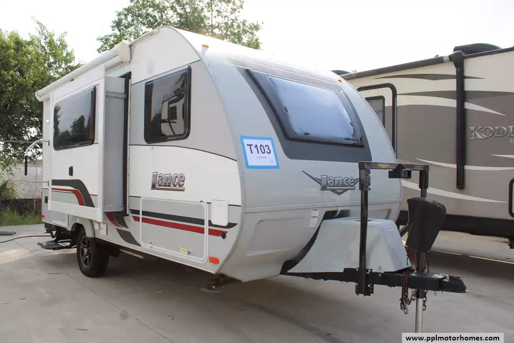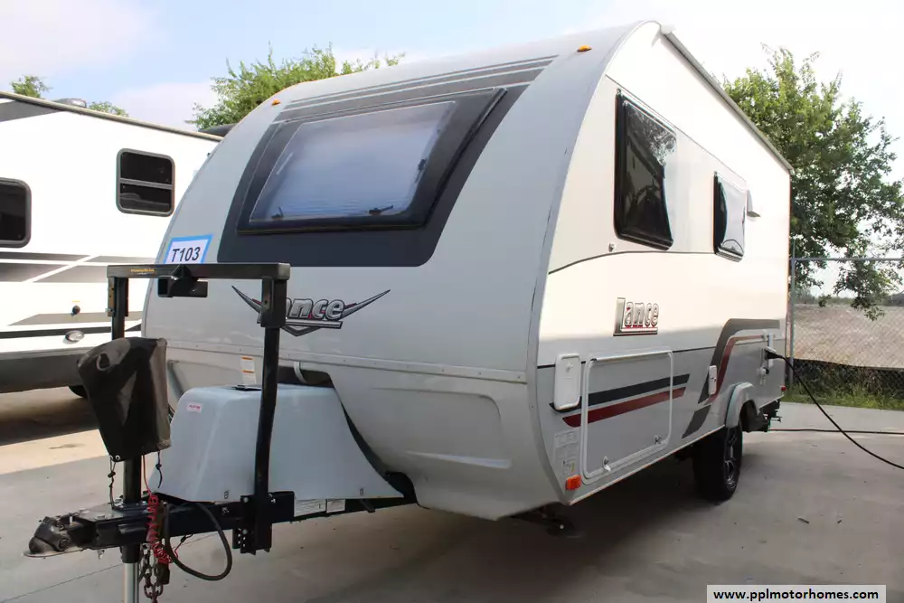 This 2019 Lance 1475 has an Electric Tongue Jack, 1 Slide-out, 1 Non-Ducted Air Conditioner, Double Door 12v Norcold Refrigerator, Automatic Main Awning, Outside Speakers, TV, DVD Player, Outside Shower, Convection Microwave, 3 Burner Range, Oven