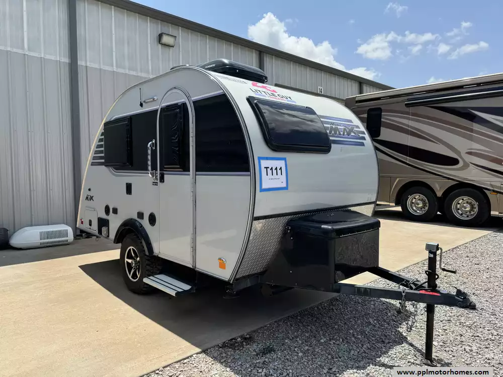 This 2019 Little Guy MINI MAX has a 1 Non-Ducted Air Conditioner, Double Door 12v Norcold Refrigerator, Solar Panel, Outside Speakers, TV, Outside Shower, Microwave, 2 Burner Range