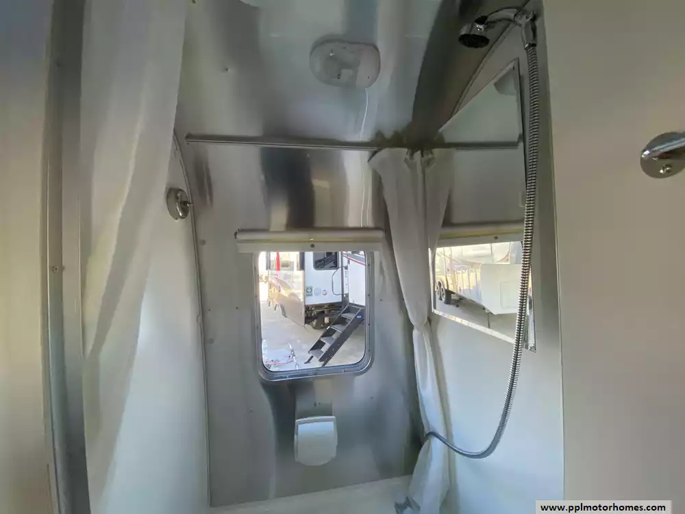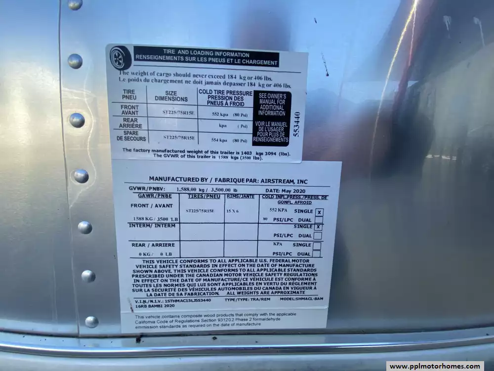 This 2020 Airstream Bambi 16RB has a 1 Non-Ducted Air Conditioner, Single Door 12v Refrigerator, Main Awning, TV, DVD Player, Outside Shower, Microwave, 2 Burner Range
