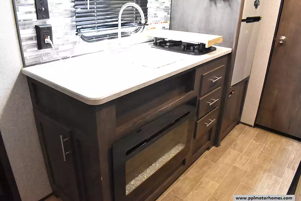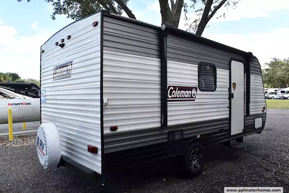 This 2020 Coleman 17B has a Window A/C, Double Door Gas/12v Refrigerator, Automatic Main Awning, Satellite Receiver, Fireplace, Microwave, 2 Burner Range
