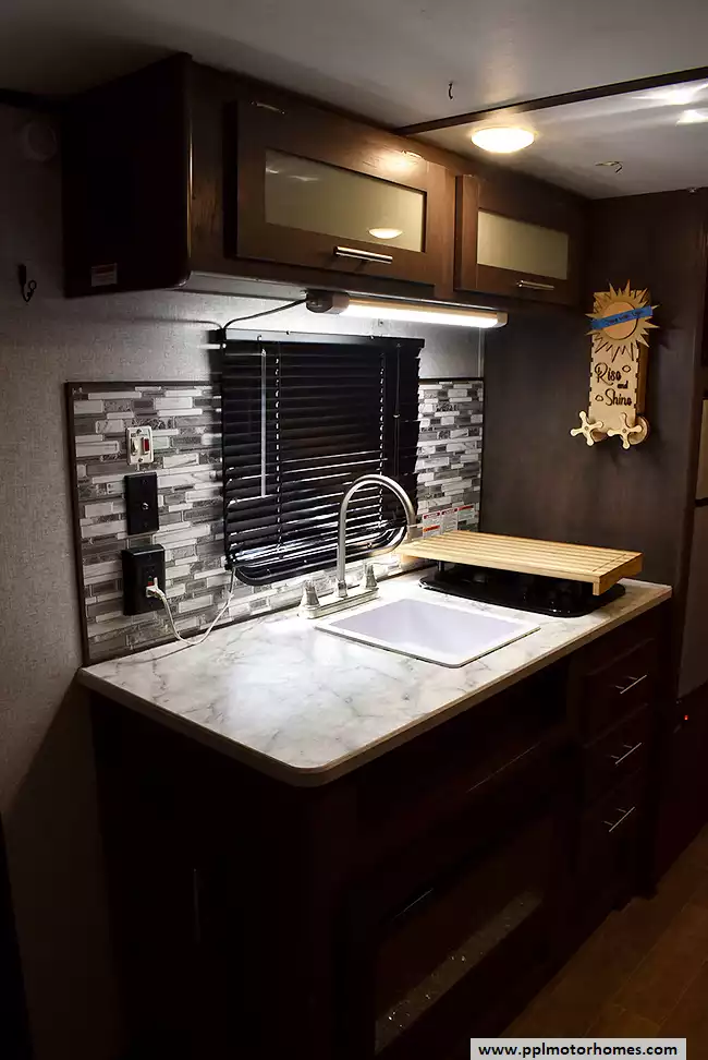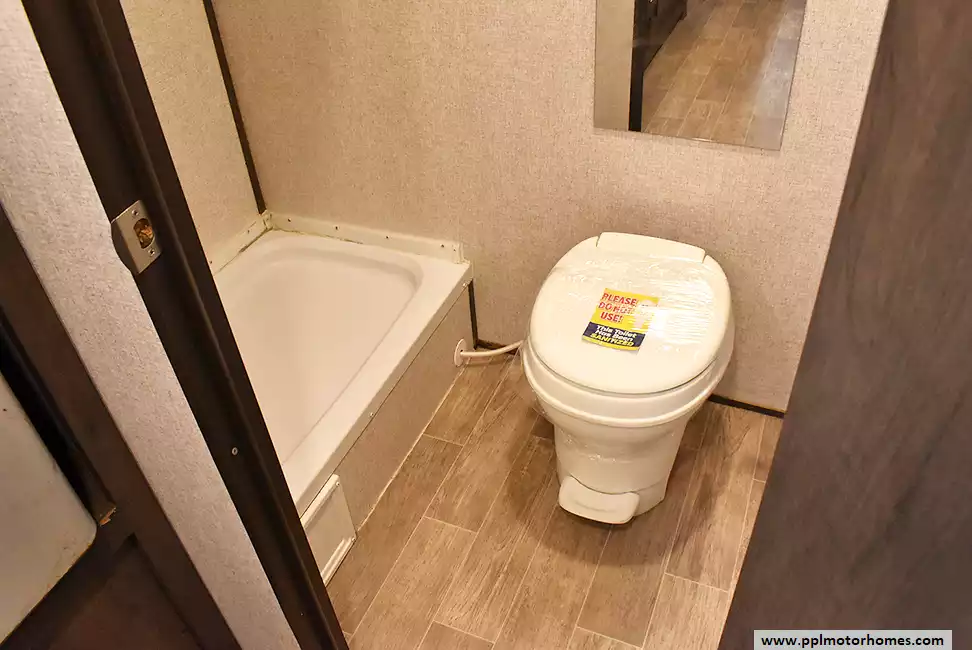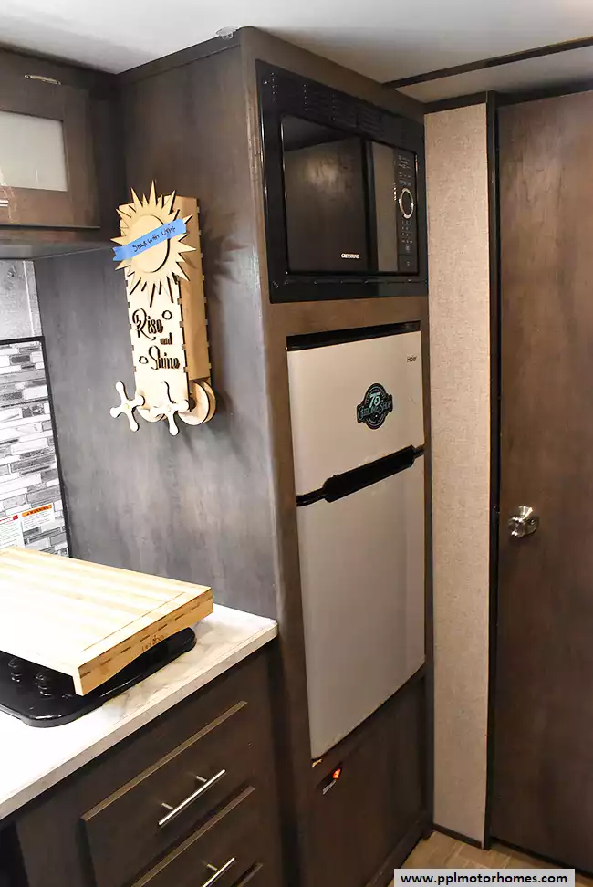 Fully Equipped Kitchen & Bathroom: Includes stove, microwave, fridge, shower, and toilet for convenience on the go.