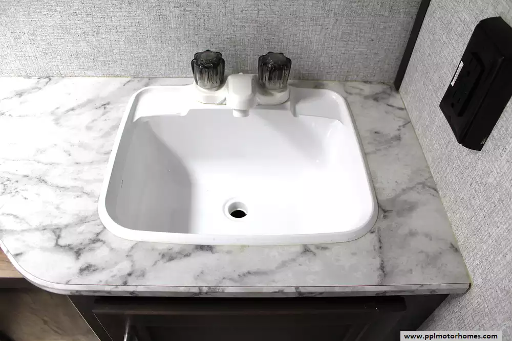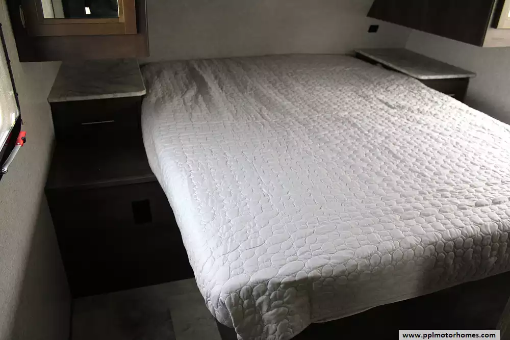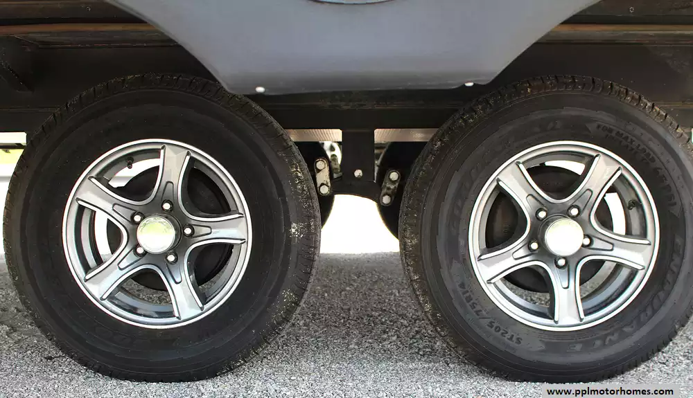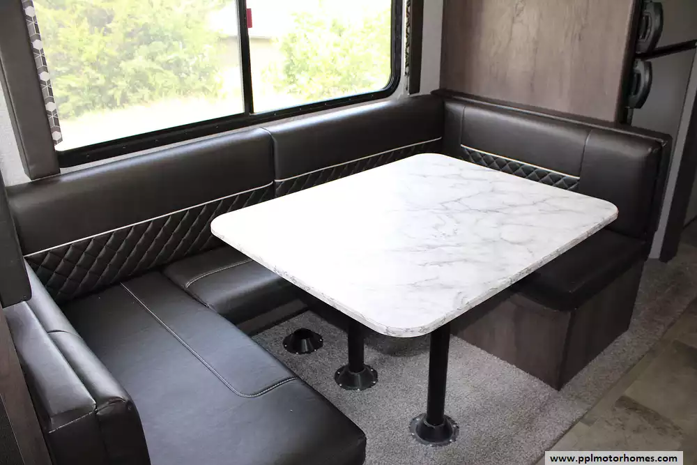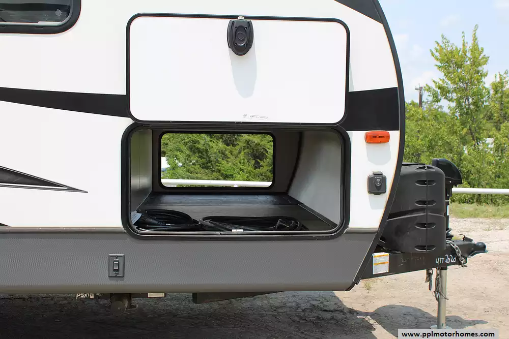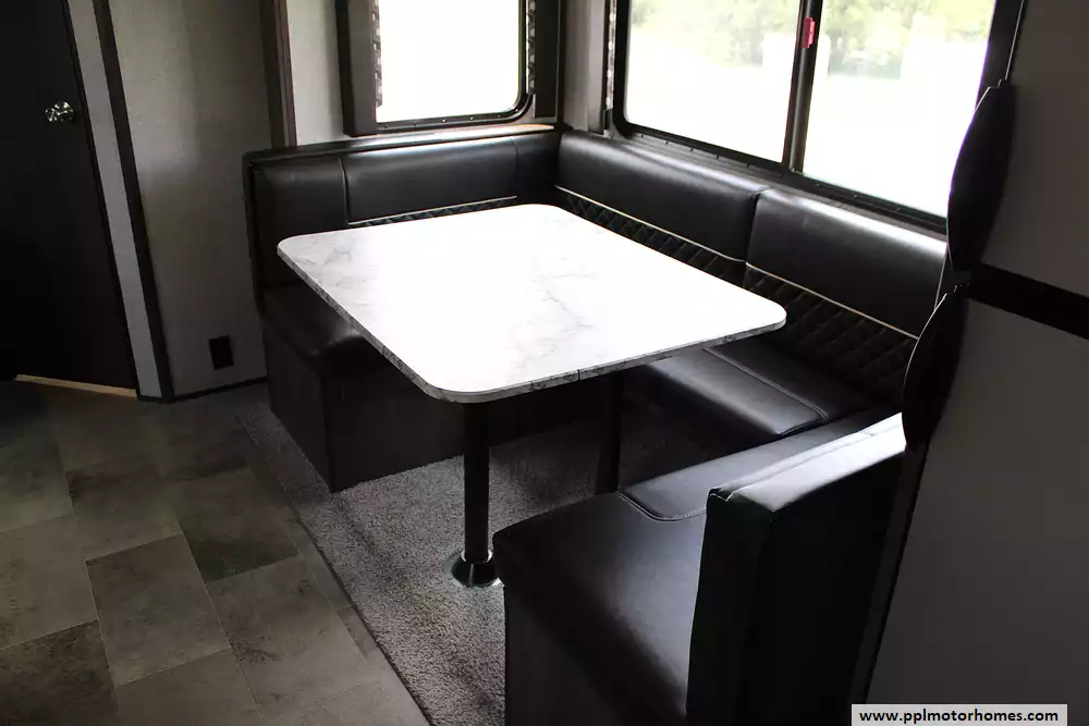 Built for ease of towing and setup, this unit has a dry weight of just 5,700 lbs, making it towable by most half-ton trucks and properly equipped SUVs. It's equipped with electric stabilizer jacks, a power tongue jack, and new tires for smooth, hassle-free travel. The fully enclosed underbelly, aluminum frame construction, and fiberglass exterior offer durability and extended-season camping capabilities.