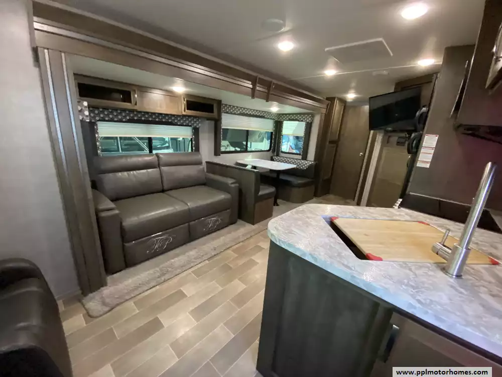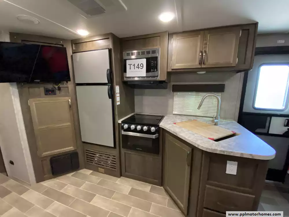 This 2020 Coleman Light Lx 2605RL has an Electric Tongue Jack, 2 Slide-outs, 2 Ducted Air Conditioners, Double Door Gas/110v Dometic Refrigerator, Automatic Main Awning And Slide Awning, Outside Speakers, TV, Outside Shower, Microwave, 3 Burner Range, Oven
