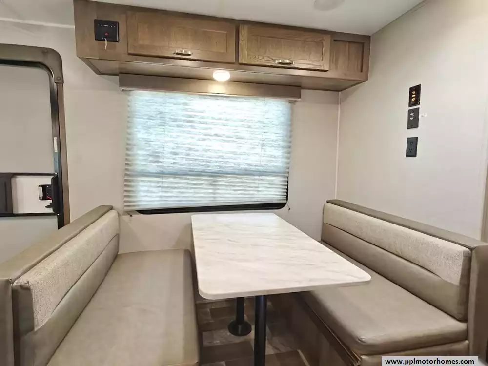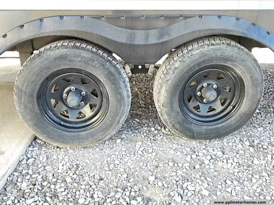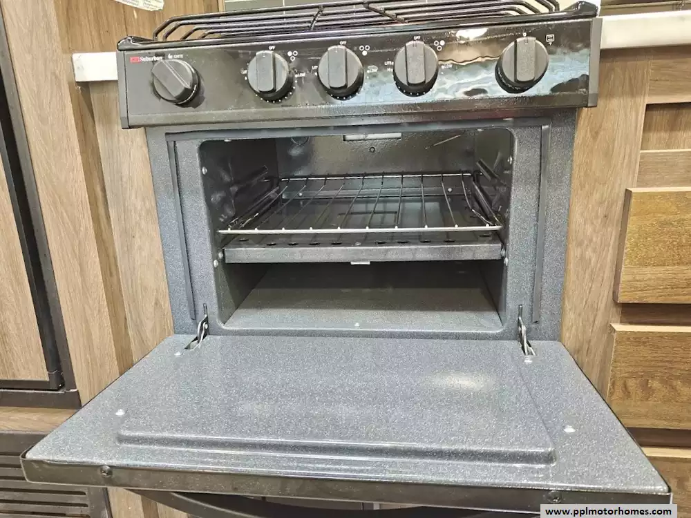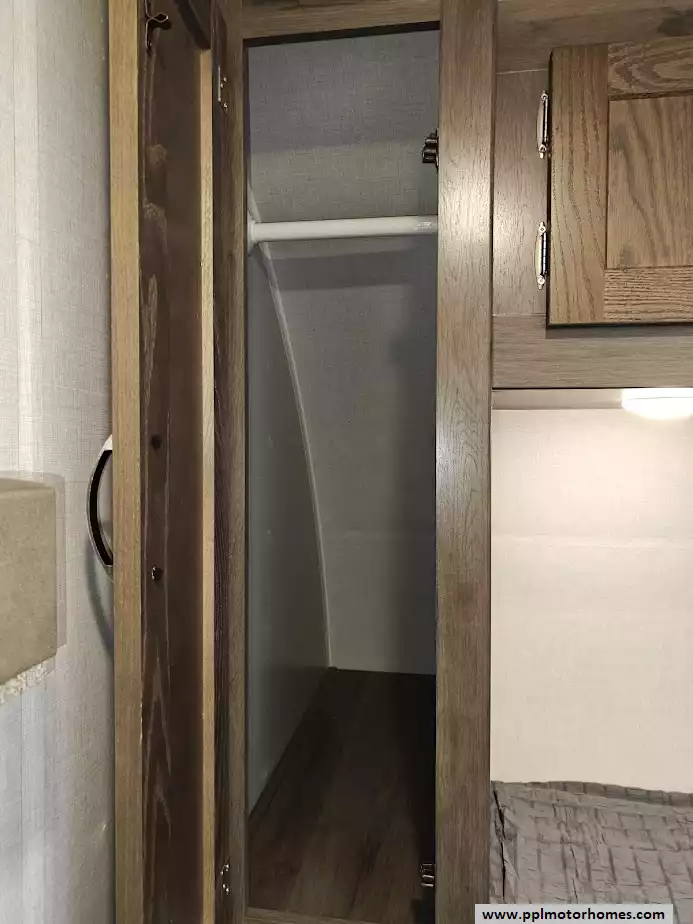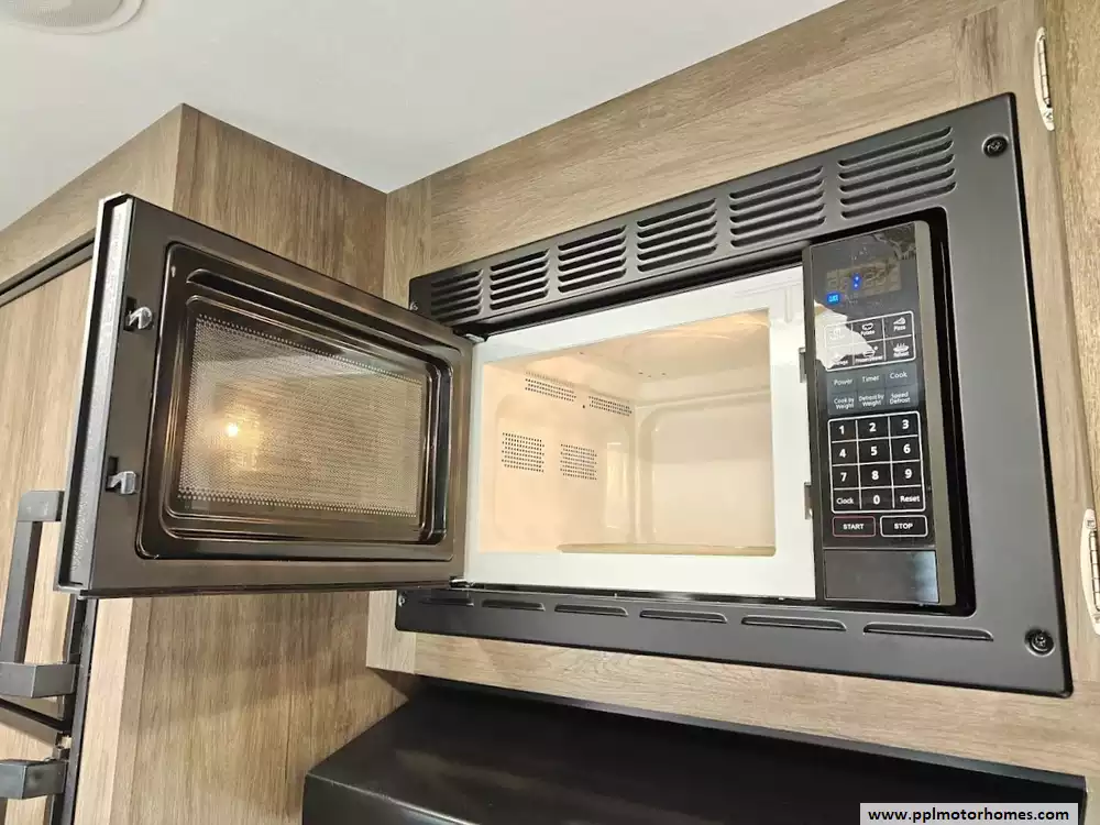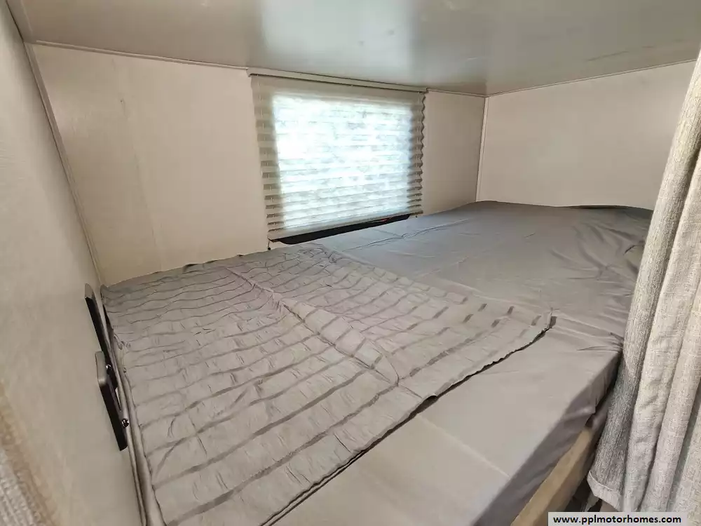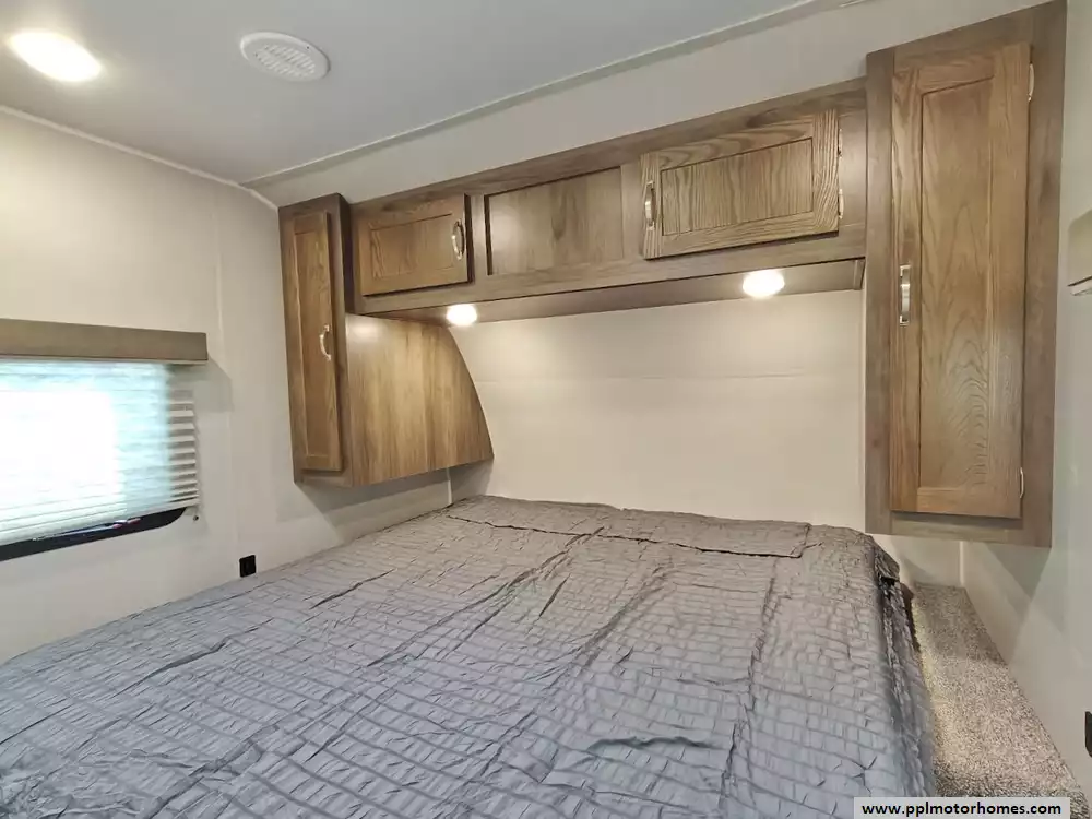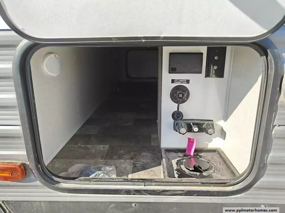 The RV offers a fully finished pass-through storage compartment, providing ample space for gear.