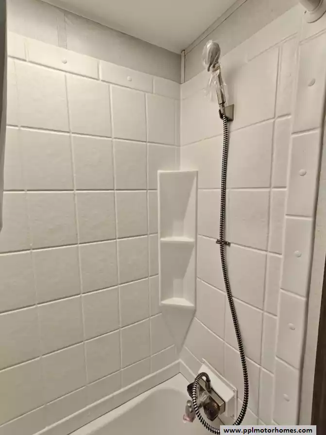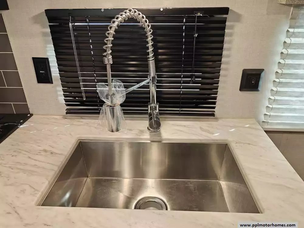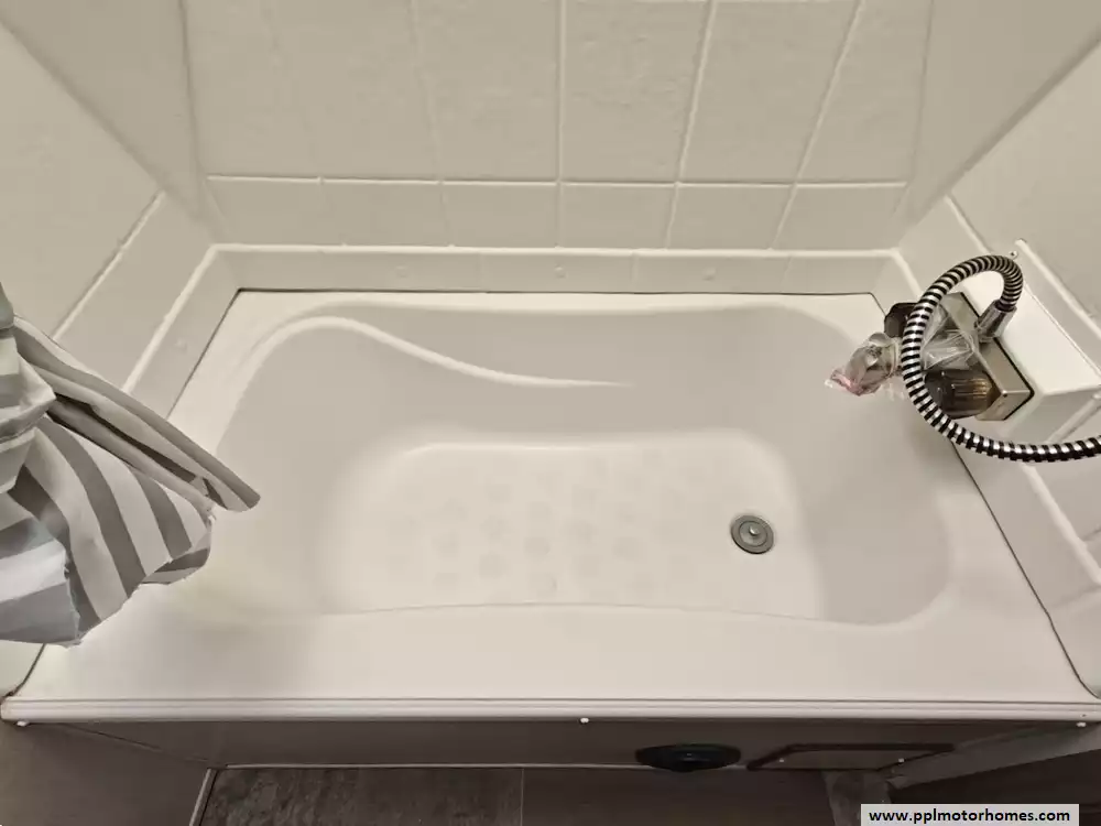 The holding tanks and essential plumbing are housed within an enclosed and sealed underbelly.
