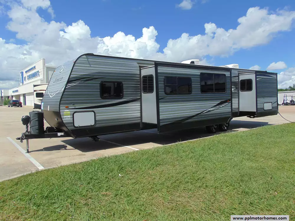 This 2020 Jayco Jay Flight 38BHDS is a luxurious and spacious travel trailer that offers ample living space,modern amenities,and comfort for large families or groups.Its quality construction,thoughtful layout,and versatile sleeping arrangements make it an excellent choice for extended vacations or seasonal camping adventures.Features Include...Electric Tongue Jack, 2 Slide-outs, 1 Non-Ducted And 1 Ducted Air Conditioner, Double Door Residential Insignia Refrigerator, Automatic Main Awning, Outside Speakers, 2 TVs, DVD Player, Outdoor Grill, Outside Shower, Fireplace, Microwave, 3 Burner Range,and Oven.Whether relaxing indoors or enjoying outdoor activities,it provides a premium camping experience for all occupants.
