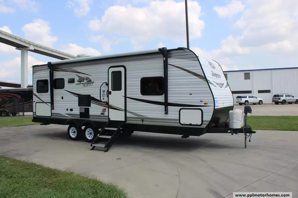 This 2020 Jay Flight Slx 245RLS a sleek and well-configured travel trailer with a front bedroom and rear living area layout, external awning, and quality construction details. Amenities Include...Electric Tongue Jack, 1 Slide-out, 1 Ducted Air Conditioner, Double Door Gas/110v Norcold Refrigerator, Automatic Main Awning, Outside Speakers, TV, DVD Player, Outside Shower, Microwave, 3 Burner Range, and Oven.