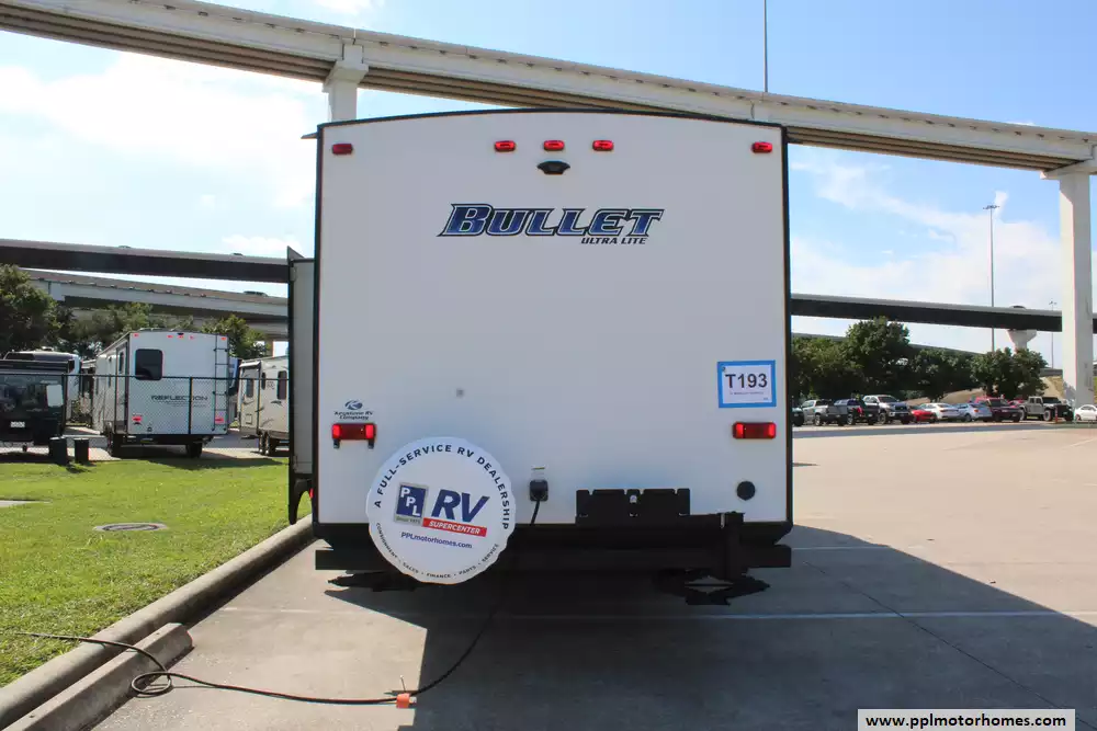 This 2020 Bullet Ultra Lite 287QBS is a family-friendly travel trailer with a clever layout and a lightweight build designed for ease of towing and comfort. Features Include...Electric Tongue Jack, 1 Slide-out, 1 Ducted Air Conditioner, Double Door Gas/110v Dometic Refrigerator, Automatic Main Awning, Outside Speakers, TV, DVD Player, Outdoor Kitchen, Outside Shower, Microwave, 3 Burner Range, and Oven.