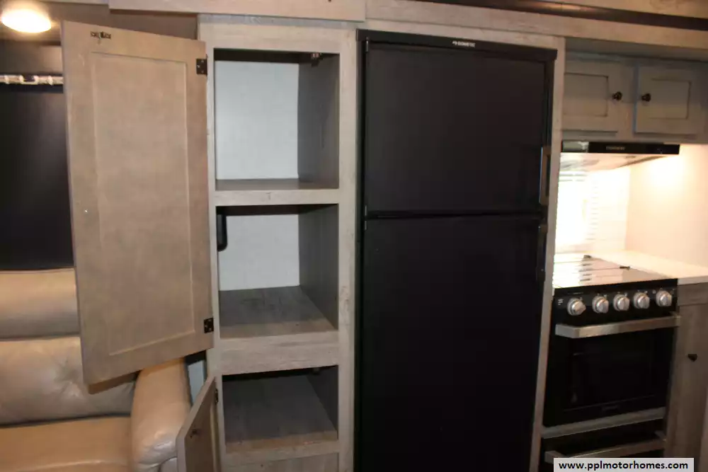 Specs: Length: 38.67 ft., Width: 8ft., Height: 11.33 ft., Payload Capacity: 2,075 lbs., Total Fresh Water Tank Capacity: 60 gal., Total Gray Water Tank Capacity: 76 gal., Total Black Water Tank Capacity: 38 gal., Total Number of Propane Tanks: 2, Total Propane Tank Capacity: 60 lbs.