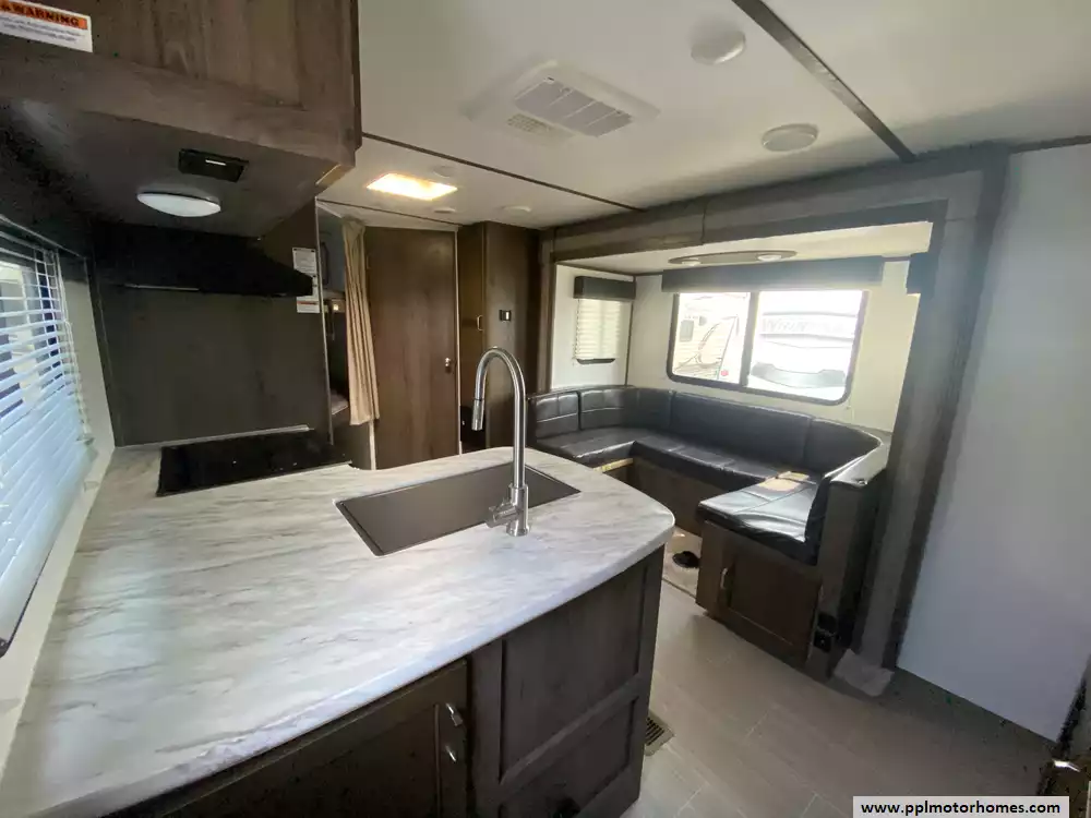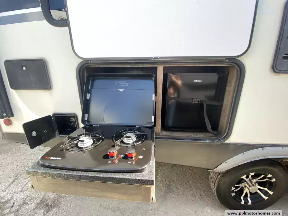 This 2020 Passport Sl 240BH has an Electric Tongue Jack, 1 Slide-out, 1 Ducted Air Conditioner, Double Door Gas/110v Dometic Refrigerator, Automatic Main Awning, Outside Speakers, TV, Outside Shower, Microwave, 3 Burner Range, Oven