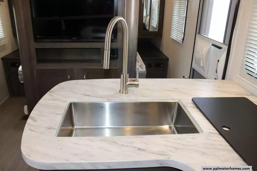 Specs: Length: 27.4 ft., Width: 8 ft., Height: 10.8 ft., Payload Capacity: 2,089 lbs., Total Fresh Water Tank Capacity: 43 gal., Total Gray Water Tank Capacity: 30 gal., Total Black Water Tank Capacity: 30 gal., Total Number of Propane Tanks: 1, Propane Tank Capacity: 40 lbs.