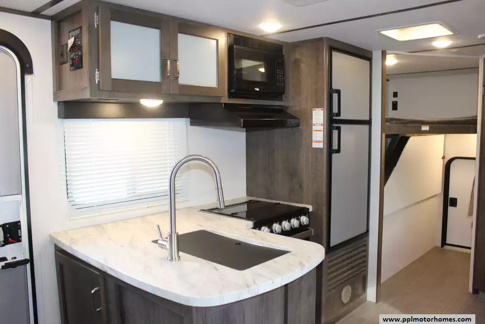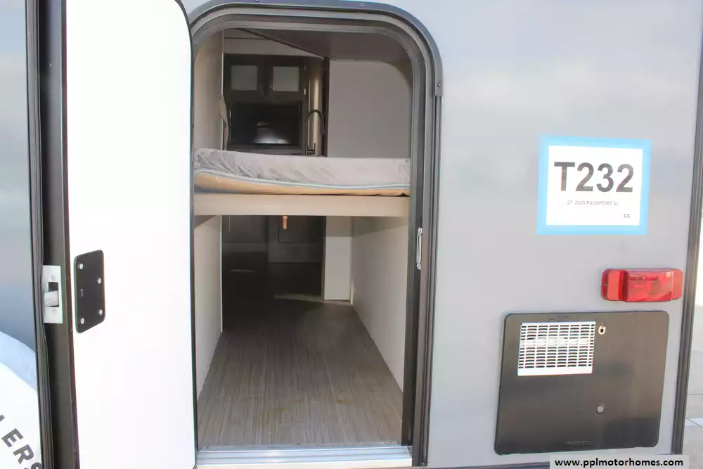 This 2020 Passport Sl 240BH is great for families or groups wanting a bunkhouse layout for kids or friends. Features Include...Electric Tongue Jack, 1 Slide-out, 1 Ducted Air Conditioner, Double Door Gas/110v Dometic Refrigerator, Automatic Main Awning And Slide Awning, Outside Speakers, TV, Outdoor Kitchen, Microwave, 3 Burner Range, and Oven.