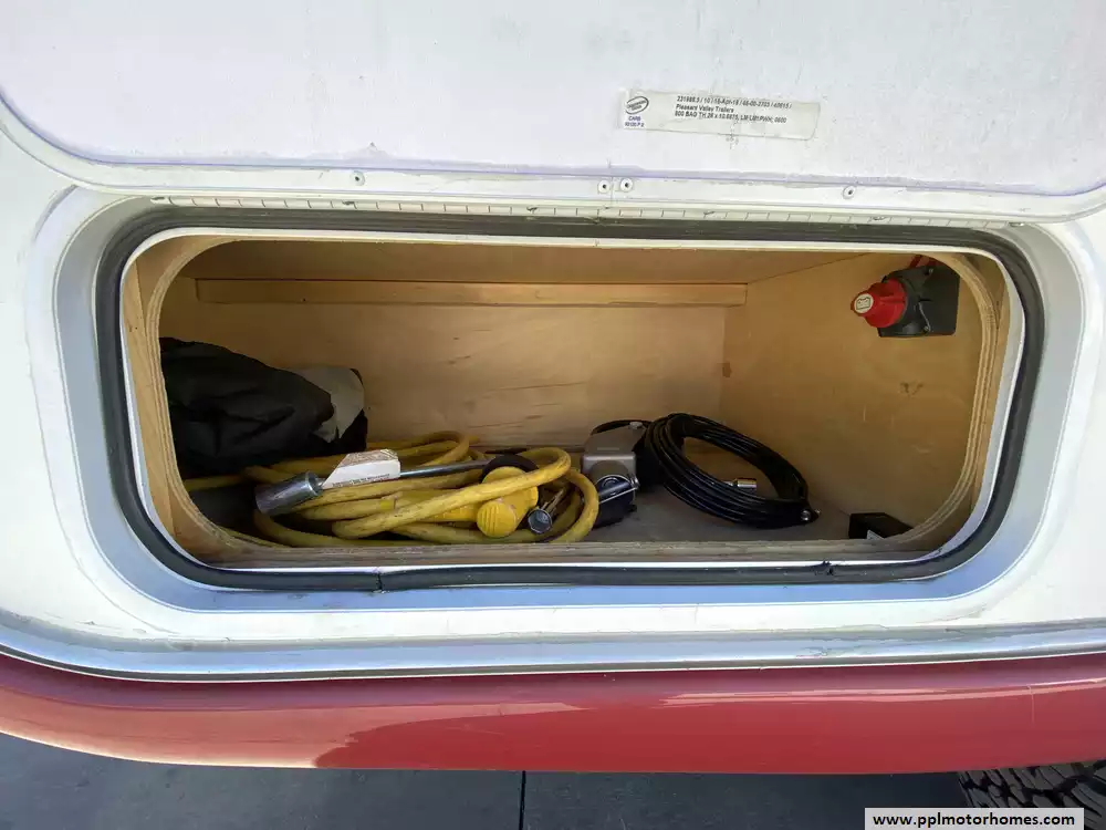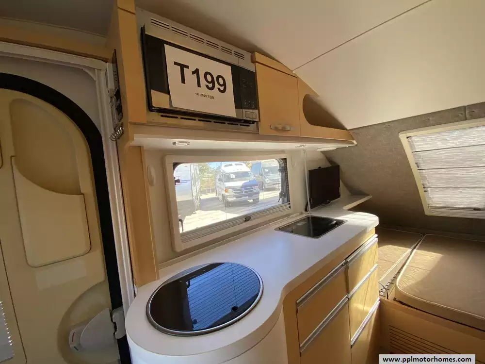 This 2020 T@B 400 has a 1 Non-Ducted Air Conditioner, Single Door Gas/110v Norcold Refrigerator, Solar Panel, Satellite Dish, TV, DVD Player, Outside Shower, Microwave, 2 Burner Range