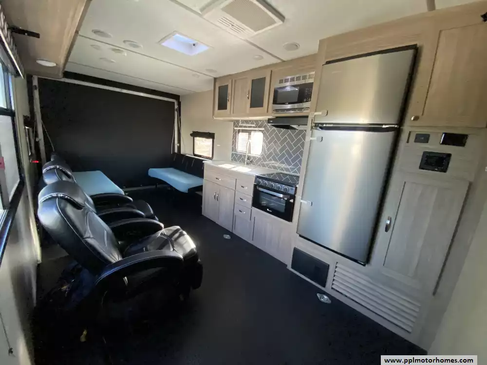 This 2021 Adrenaline 27LT has an Electric Tongue Jack, 2 Ducted Air Conditioners, Double Door 12v Everchill Refrigerator, Automatic Main Awning, Solar Panel, Outside Speakers, 2 TVs, Microwave, 3 Burner Range, Oven. New Battle Born Battery 100AH 12V LifePO4 Deep Cycle LIB, New GoodYear Tires, New 10" DreamFoam Essential 10" Mattress,Back up Camera w/Monitor