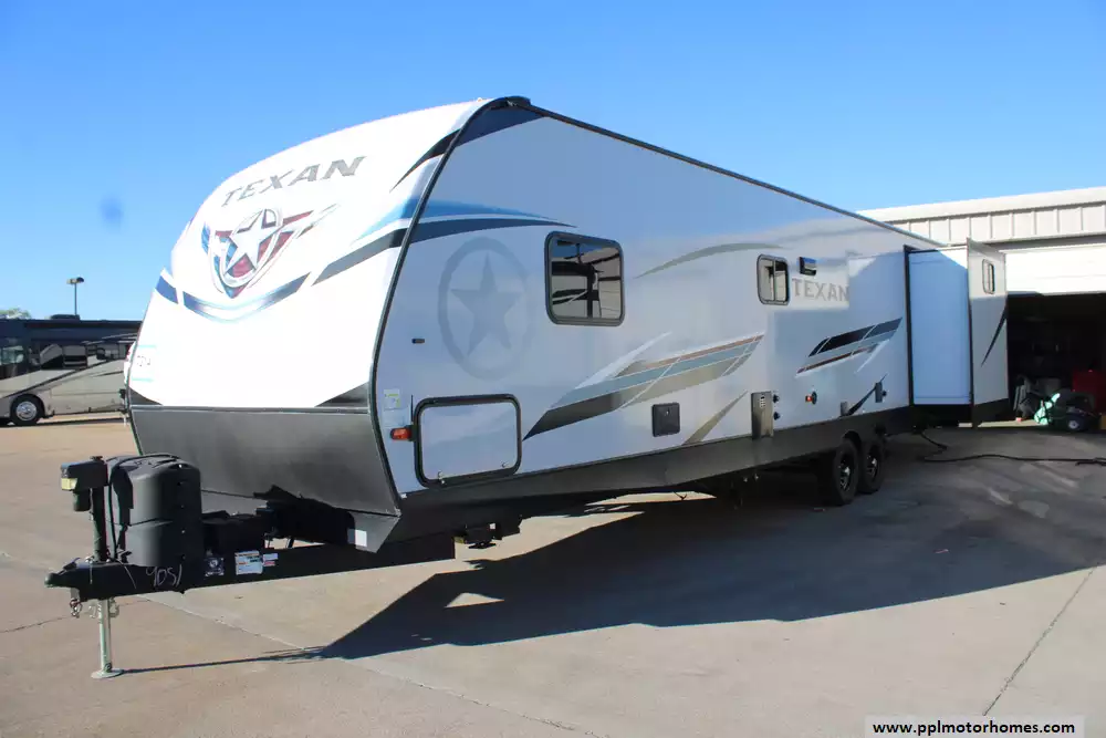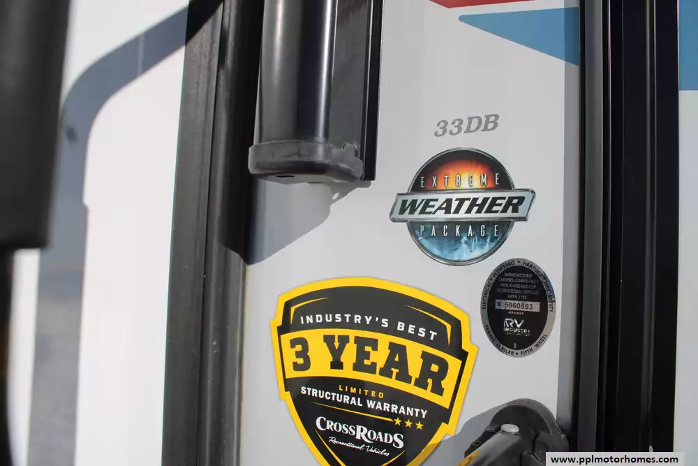 The 2021 CrossRoads Texan 33DB offers a spacious and well-appointed floorplan, measuring approximately 38 feet in length and featuring dual slide-outs to expand the living space for a family or group. Inside you'll find a comfortable front master bedroom, a dedicated bunkhouse in the rear (ideal for kids or guests), and a bath and a half to enhance convenience. The trailer is designed for all-season use with a fully enclosed underbelly and generous tank capacities (fresh water 43 gal, black water 60 gal) and supports a broad range of amenities. With its thoughtful layout, substantial storage and dual-slide convenience, this model blends comfort, utility and family readiness for your camping adventures. This model also features a brand-new roof along with a brand new front awning. Honorable mentions include a 4-point stabilizing system, rear and side cameras (monitor included), bluetooth sound bar, and pre-wiring for a Winegard Connect 2.0. Enjoy your adventures in this 2021 Crossroads Texan 33DB!