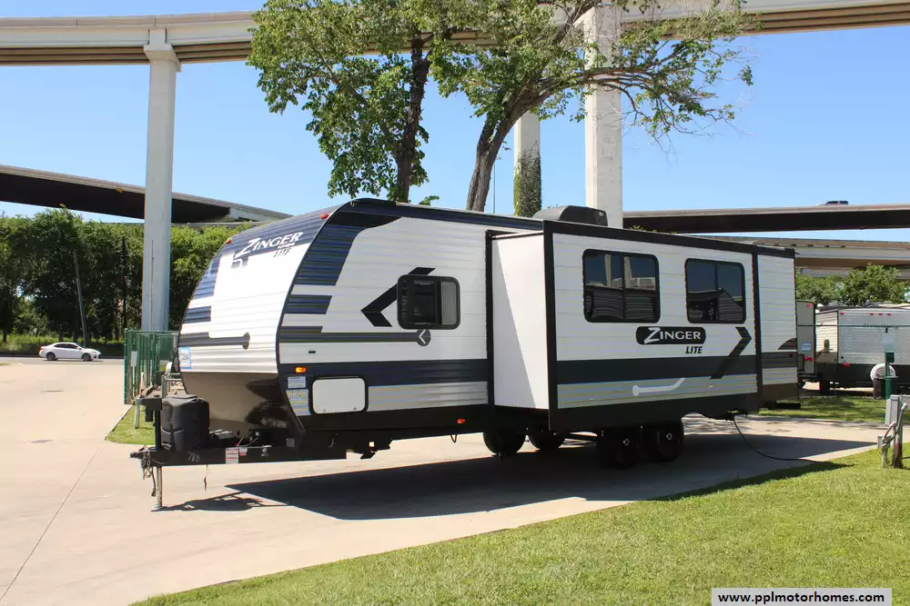 This 2021 Zinger Lite 280BH is a versatile and family-friendly travel trailer known for its spacious interior,thoughtful design,and modern amenities.Amenities Include...Electric Tongue Jack, 1 Slide-out, 1 Ducted Air Conditioner, Double Door Gas/110v Norcold Refrigerator, Automatic Main Awning, Outside Speakers, TV, Outdoor Kitchen, Outside Shower, Microwave,3 Burner Range,and Oven.This is a well-designed travel trailer that combines comfort,convenience, and family-friendly features, making it an ideal choice for travelers seeking a versatile and enjoyable RV experience.