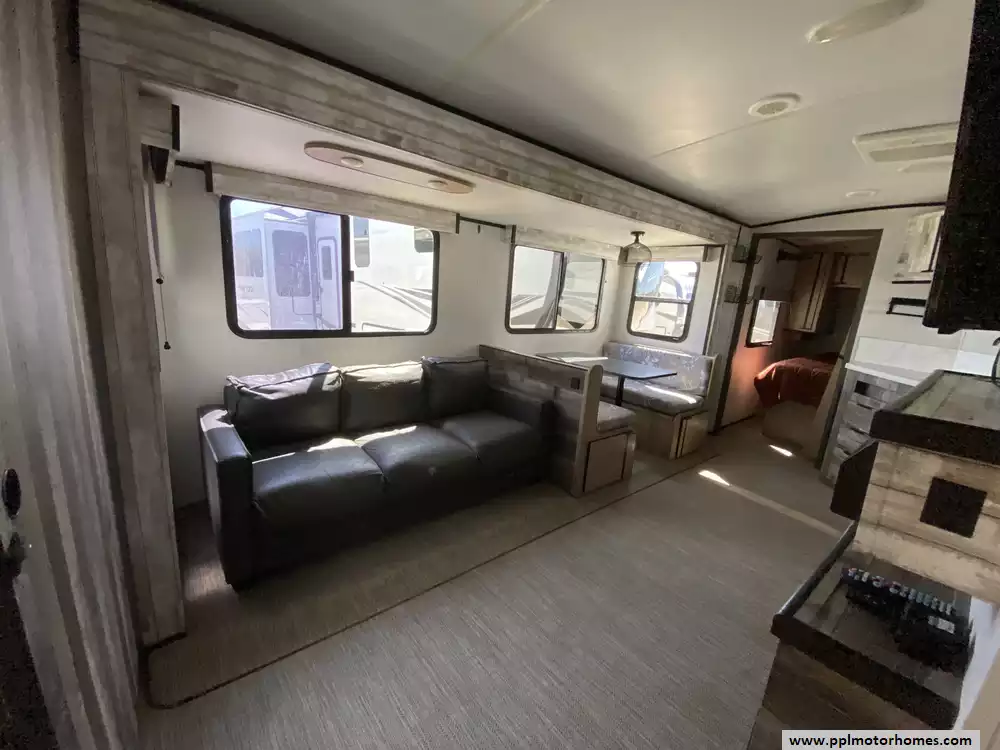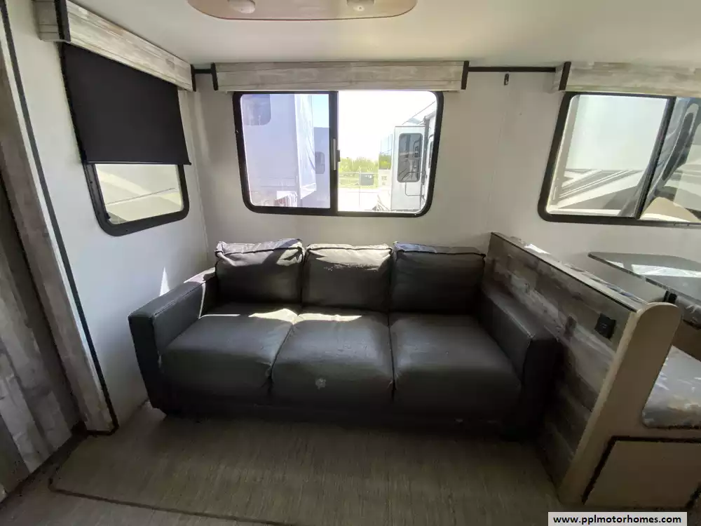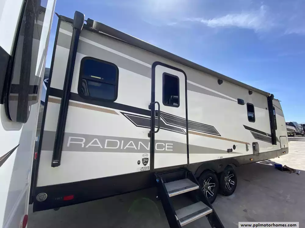 Experience the perfect blend of lightweight luxury and durable craftsmanship with this 2021 Radiance 25RB. Known for its award-winning design and superior construction, the Radiance series stands out with its Azdel composite walls and a vaulted barrel ceiling that provides an exceptionally open, airy feel throughout the cabin. This 30-foot travel trailer is built for longevity with a rugged TPO roof and a painted fiberglass front cap designed to withstand the elements while remaining easy to tow. The 25RB floorplan is a favorite among travelers for its impressively spacious rear bathroom and seamless living area, offering a refined residential experience that feels like a high-end cottage on wheels.