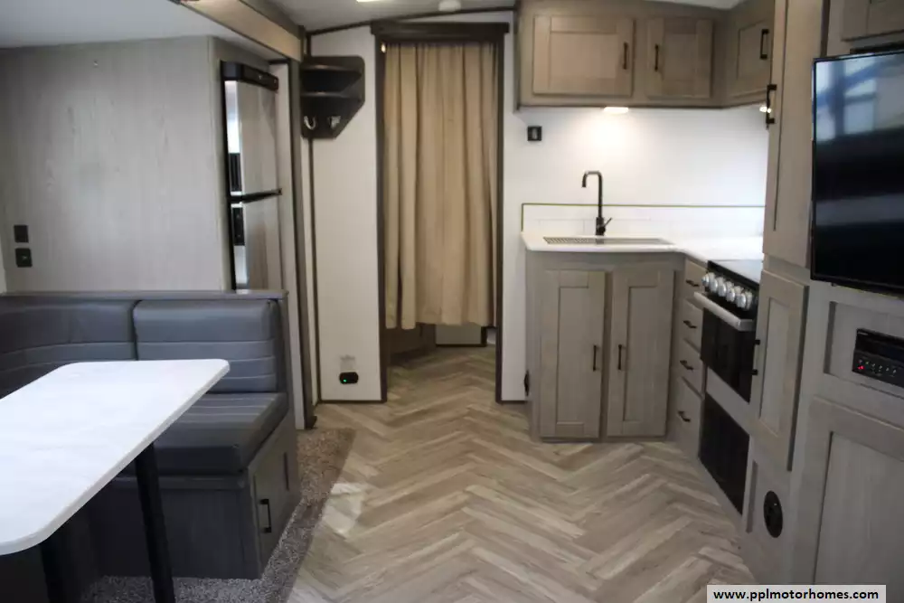 The 2021 Cruiser RV Shadow Cruiser 269RLS is a 30-foot-11-inch travel trailer that strikes a balance between manageable size, comfort, and practical amenities, making it an appealing choice for couples or small families seeking a towable home away from home. This model sleeps up to four, thanks to a master bedroom with a king-size sliding bed plus convertible dinette sleeping area (original sofa sleeper was removed and replaced with a more residential-style sofa), and uses a single-slideout design to give the main living and dining space more room without significantly increasing towing complexity. Inside, you'll find a U-shaped dinette, fully equipped kitchen (including range/oven, refrigerator, and ample countertop/storage space), and a full bathroom, all within a lightweight, easy-to-tow package. On the exterior and construction side, the 269RLS uses the typical lightweight-built standards of the Shadow Cruiser line: aluminum framing, insulated underbelly, pass-through storage, power stabilizer jacks, and a power awning, features that help make it practical for travel in varied climates and for everyday towing. Overall, the 2021 269RLS offers a sweet-spot trailer for those wanting decent living space, sleeping capacity for guests, and full amenities, without climbing into super-heavy fifth-wheel or long-haul trailer territory.
