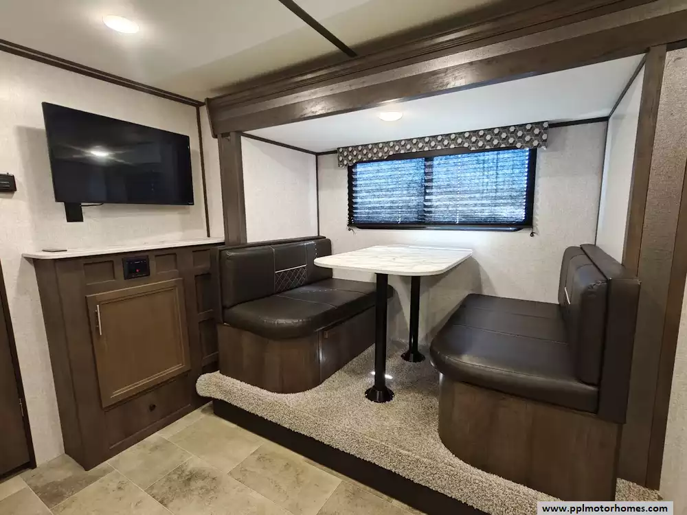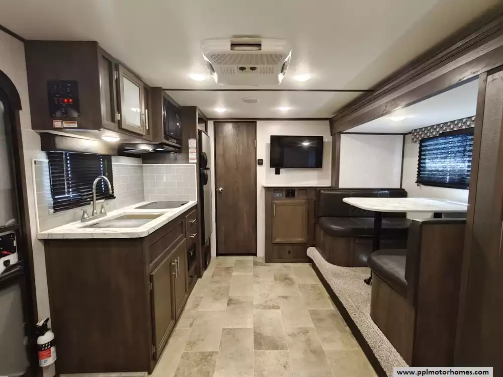 The interior is designed for maximum convenience, featuring a single slide-out that significantly opens up the floor plan and a ducted air conditioner to maintain the perfect temperature. The kitchen is fully equipped with a two-burner range, a convection microwave, and a double door gas/110v Dometic refrigerator for all your meal prep needs. Setting up camp is effortless thanks to the electric tongue jack and automatic main awning, while the included TV and outside speakers ensure you have premium entertainment options whether you are relaxing inside or lounging under the stars. This well-maintained Coleman Light LX is ready to help you create lasting memories on the open road.