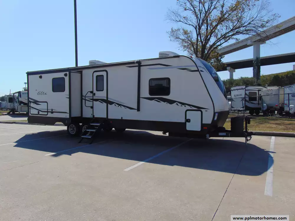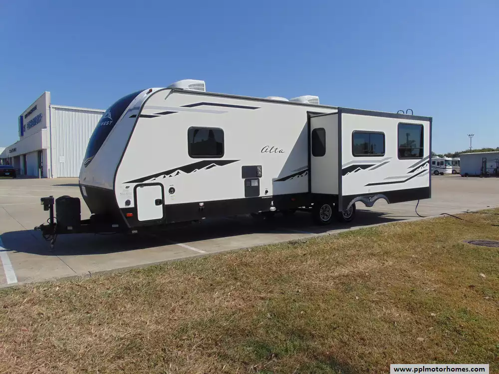 This 2021 Alta 2810KIK is a well-designed travel trailer that combines comfort, convenience,and style,making it perfect for campers looking for a spacious yet lightweight option.It offers an open floor plan with features aimed at enhancing your camping experience.Features Include...Electric Tongue Jack, 2 Slide-outs, 1 Non-Ducted And 1 Ducted Air Conditioner, Double Door 110v Residential Magic Chef Refrigerator, Automatic Main Awning,Step Above Entry Steps,Extended Climate Guard, Outside Entertainment System, TV, Outdoor Kitchen, Outside Shower, Fireplace, Microwave,and 3 Burner Range.It combines functionality and comfort,making it a great choice for both weekend getaways and longer adventures.