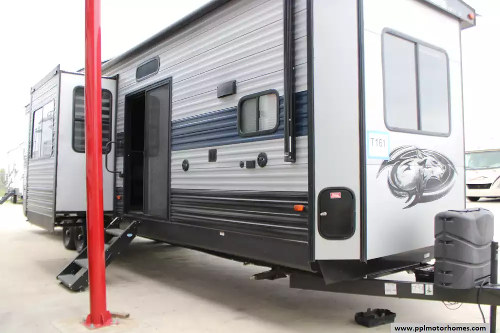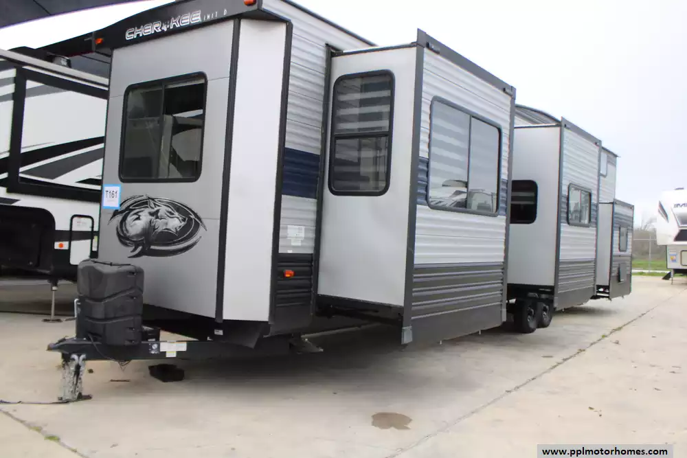 This 2021 Cherokee by Forest River 39SR has a 4 Slide-outs, 2 Ducted Air Conditioners, Double Door Refrigerator, Automatic Main Awning, Washer/Dryer, Outside Speakers, TV, Outside Shower, Fireplace, Microwave, 3 Burner Range, Oven