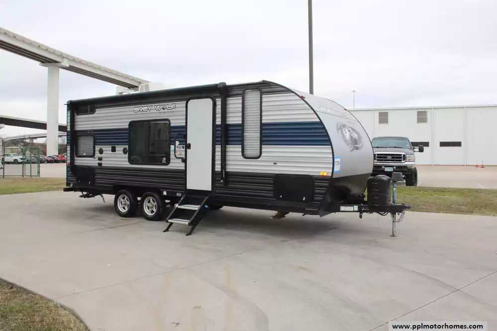 This 2021 Cherokee Grey Wolf SE 22MKSE is a travel trailer that epitomizes the perfect blend of comfort, functionality, and style for outdoor enthusiasts. This model, manufactured by Forest River, is part of the Grey Wolf series, known for its innovative features and attention to detail..Amenities Include...Has an Electric Tongue Jack, 1 Ducted Air Conditioner, Double Door 110v Furrion Refrigerator, Automatic Main Awning, Outside Speakers,Step Above Steps,Camp Fire Package, Outside Shower, Microwave, 3 Burner Range,and Oven.This is a well-crafted travel trailer that caters to the needs of adventurous travelers. Its combination of functionality, style, and comfort makes it a standout choice for those seeking a home away from home during their outdoor escapades. Whether towing it to a scenic campground or embarking on a cross-country journey, this travel trailer promises a memorable and enjoyable experience.