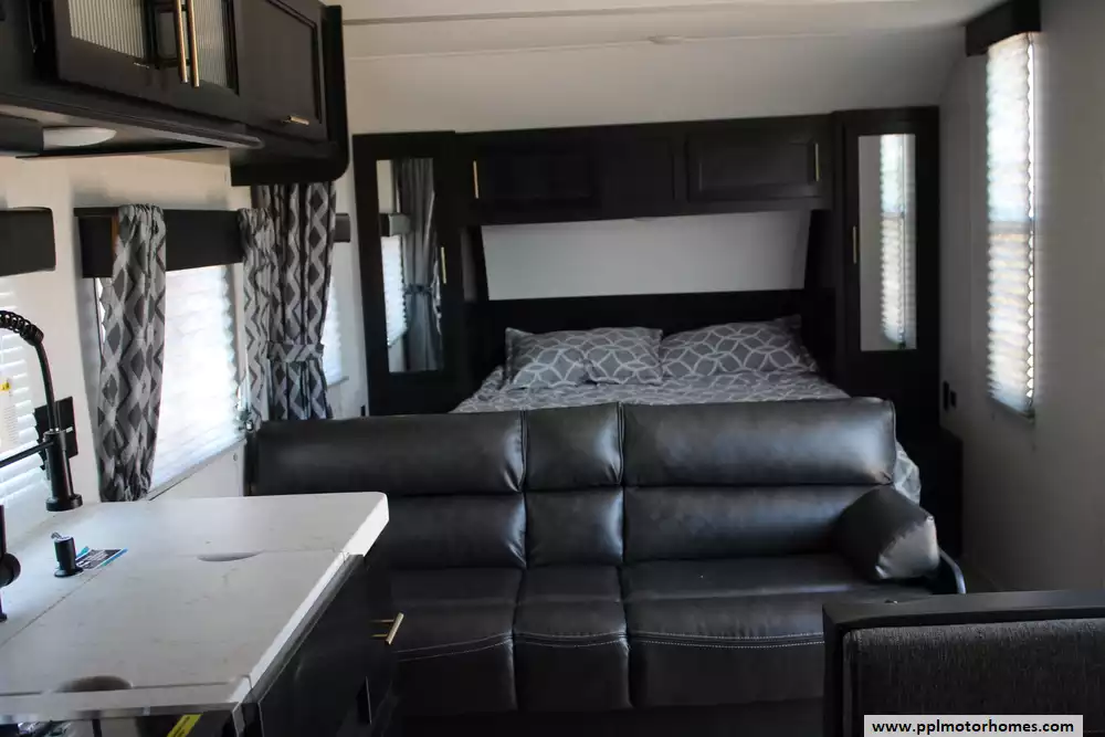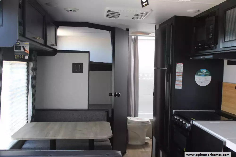 The 2021 Forest River Grey Wolf 26DJSE presents a clever, family-focused layout that blends comfort and practicality into one inviting package. It welcomes campers with a cozy front bedroom and a rear bunk area, while a central living space featuring a dinette and sofa creates a perfect gathering spot. With thoughtful touches like outdoor entertainment hookups, a power awning, and smart storage solutions, it strikes a harmonious balance between homey warmth and outdoor adaptability, making it an ideal companion for memorable adventures on the road.
