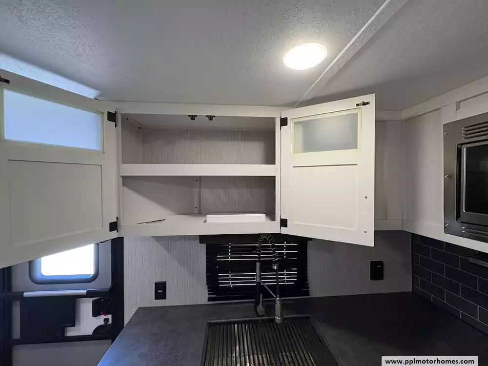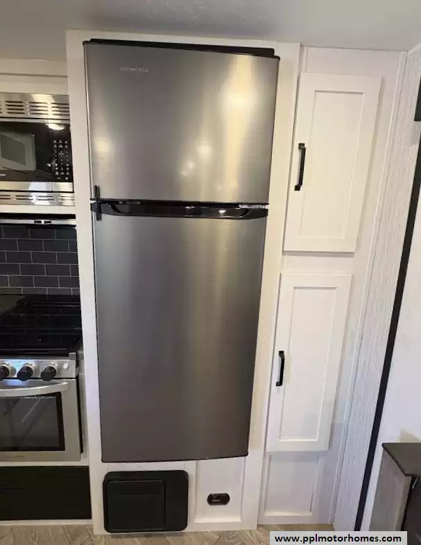 Setting up camp is effortless with the electric tongue jack and automatic main awning, allowing you more time to enjoy the outdoors. The exterior is fully equipped for adventure, featuring an outdoor grill, outside speakers, and a convenient outside shower to keep the interior pristine. Food storage is never an issue with the large double-door Everchill refrigerator, and the front private bedroom offers a quiet retreat after a day of exploration. Combining versatile floor planning with high-end amenities, this Puma 25RKQB is a dependable and stylish choice for couples or small families looking to elevate their next camping journey.