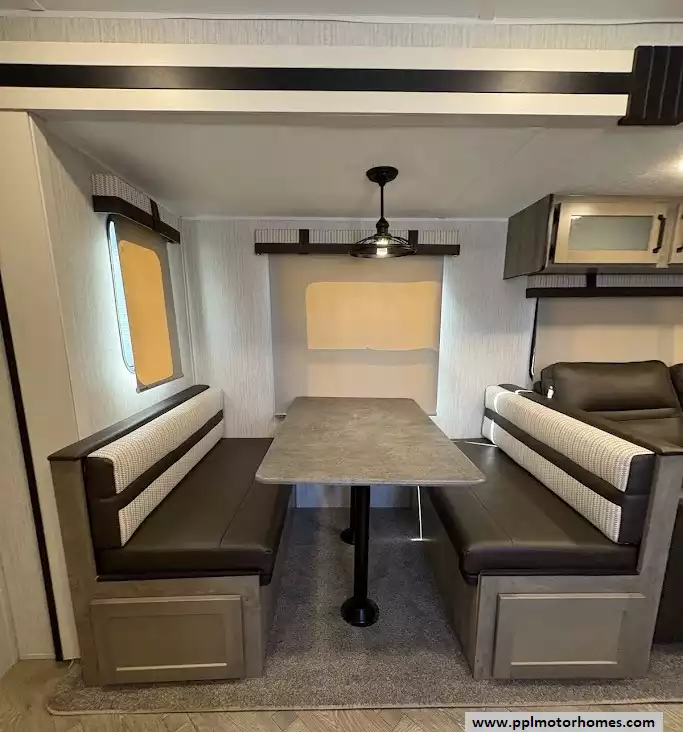 The 2021 Palomino Puma 25RKQB is a masterfully designed 30-foot travel trailer that perfectly balances residential comfort with the rugged durability Palomino is known for. Built with a sturdy aluminum body and a powder-coated steel frame, this model has earned a reputation for its thoughtful rear-kitchen layout, which maximizes counter space and storage-ideal for those who enjoy home-cooked meals on the road. The interior feels incredibly spacious thanks to a large slide-out that opens up the living area, while the 80-inch high ceilings and ducted air conditioner ensure a bright, airy environment. Whether you are relaxing by the electric fireplace, watching a movie on the DVD player, or preparing dinner using the three-burner range, oven, and microwave, this trailer provides a true home-away-from-home experience.