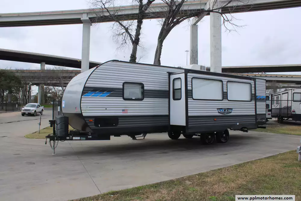 This 2021 Salem 26DBUD is a popular family-oriented travel trailer designed for extended camping, weekend trips, and larger groups. Features Include...Electric Tongue Jack, 1 Slide-out, 1 Ducted Air Conditioner, Double Door Everchill Refrigerator, Outside Speakers, Outdoor Kitchen, Fireplace, Microwave, 3 Burner Range, and Oven.