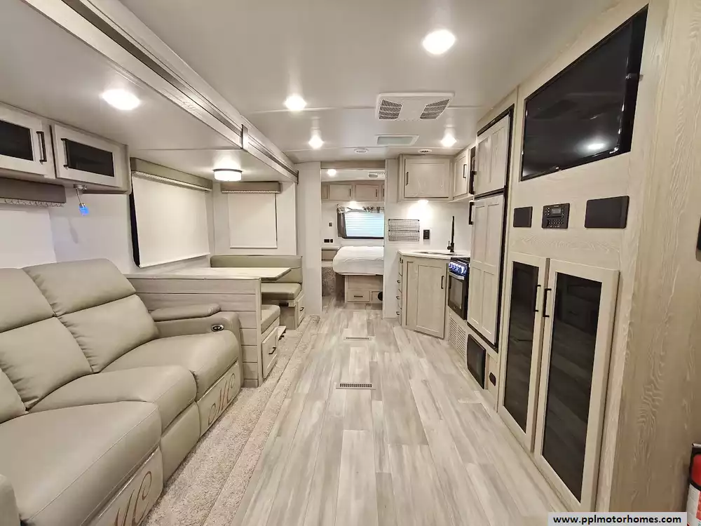 (Floor plan is NOT drawn to scale. Length of vehicle is approximate. Buyer is responsible for verifying actual length. PPL Motor Homes compiled this list of features, specifications, equipment and options as a guide. No representation or warranties, either express or implied, are made as to the accuracy of the information herein. Please verify for yourself all items listed before purchase.)